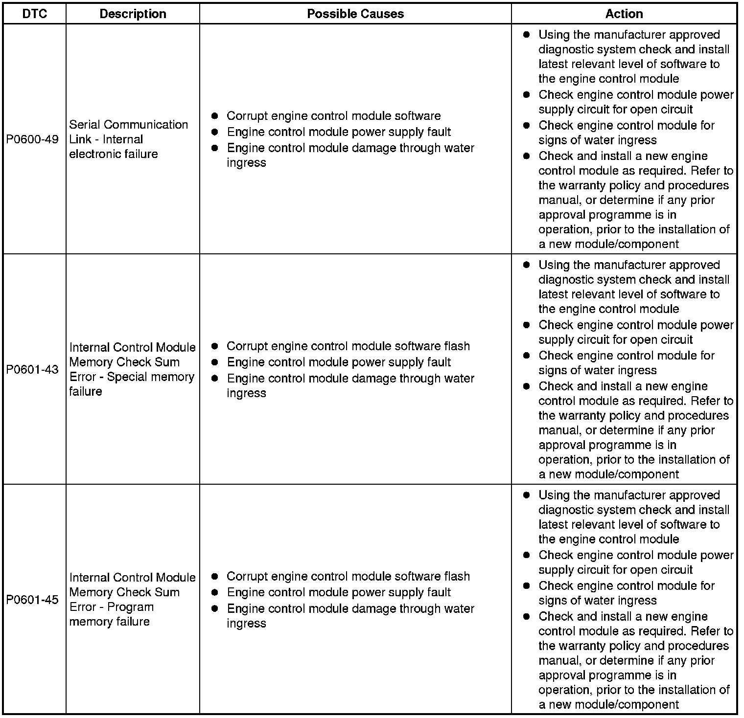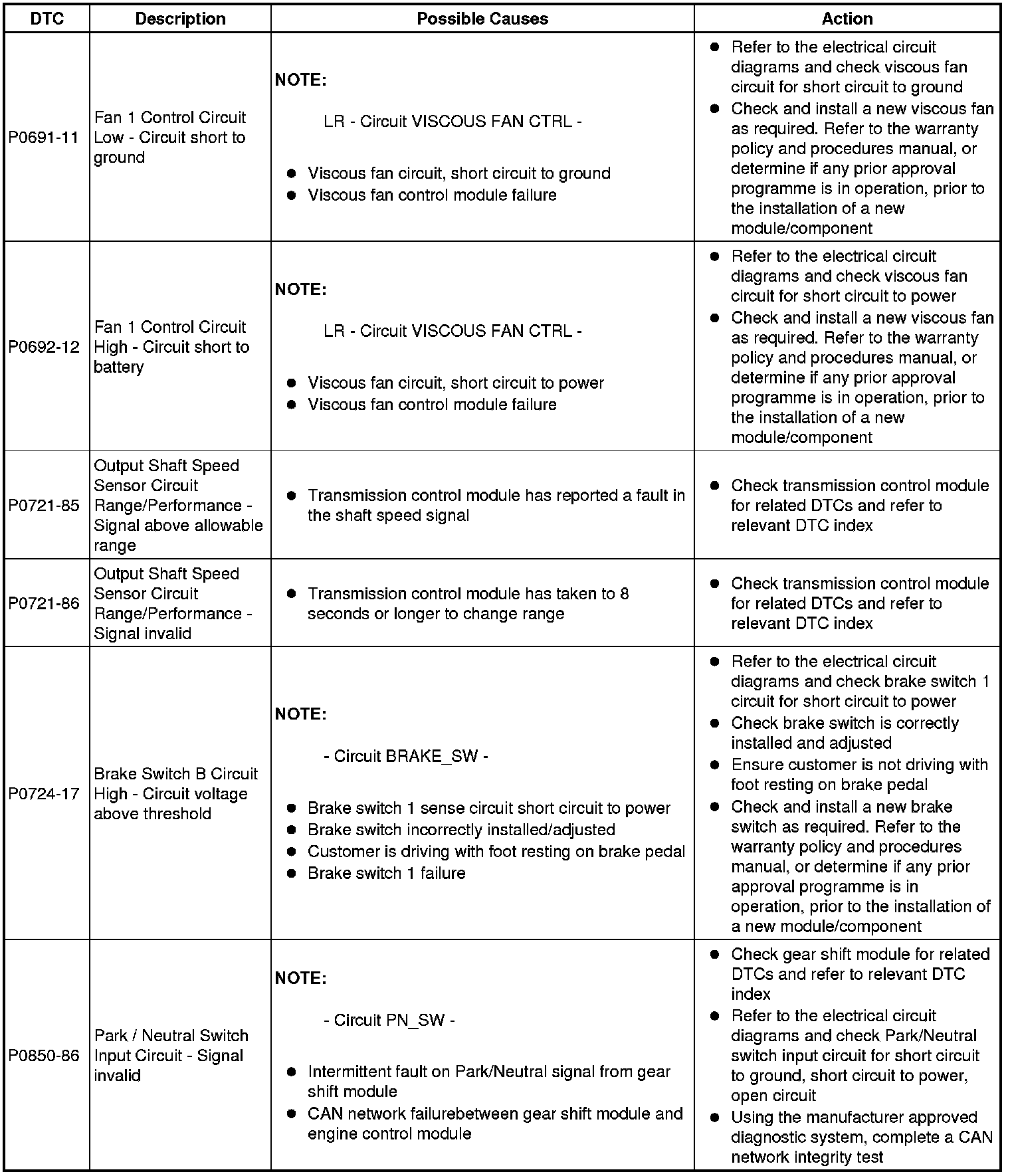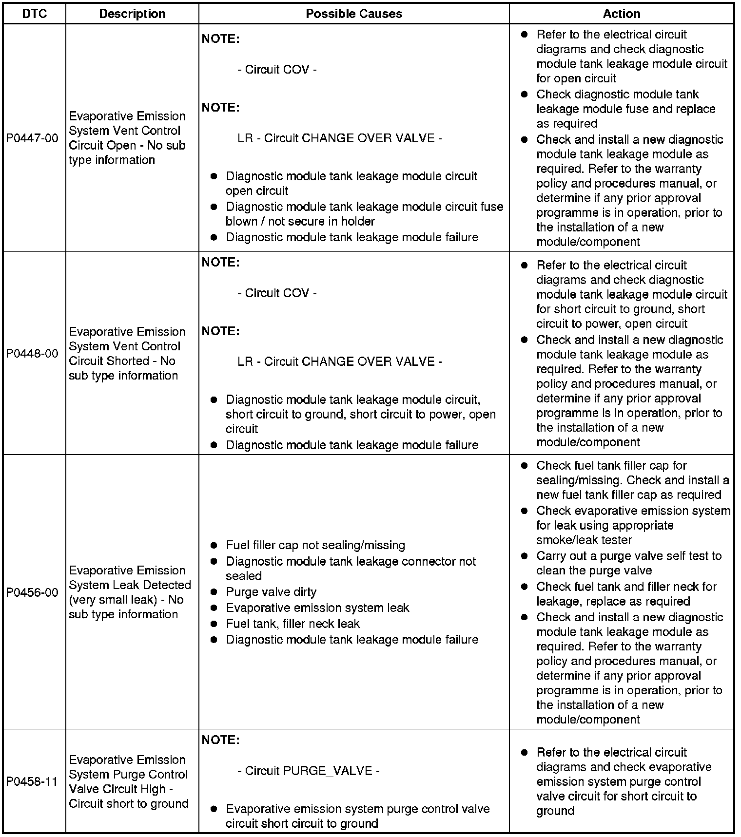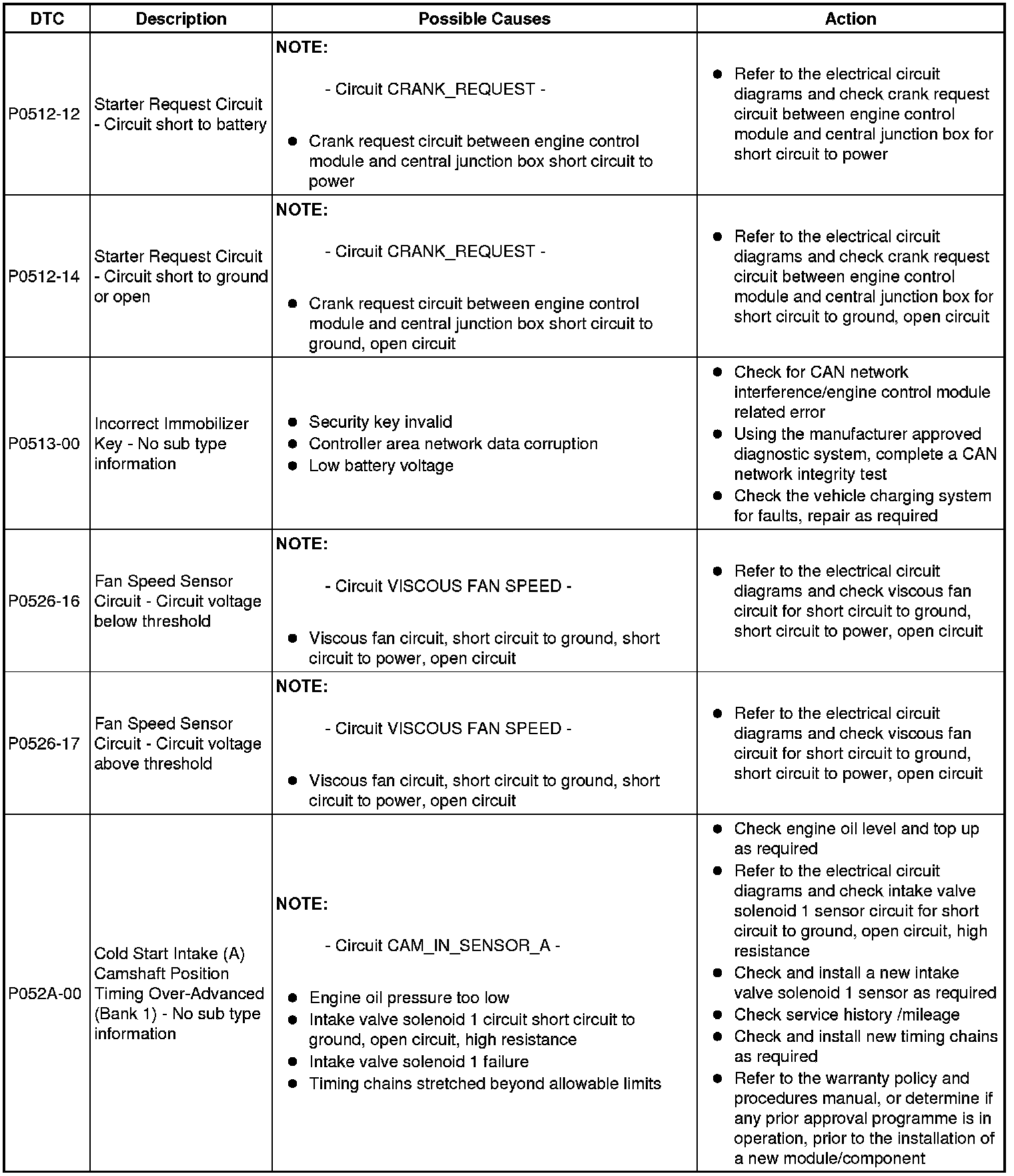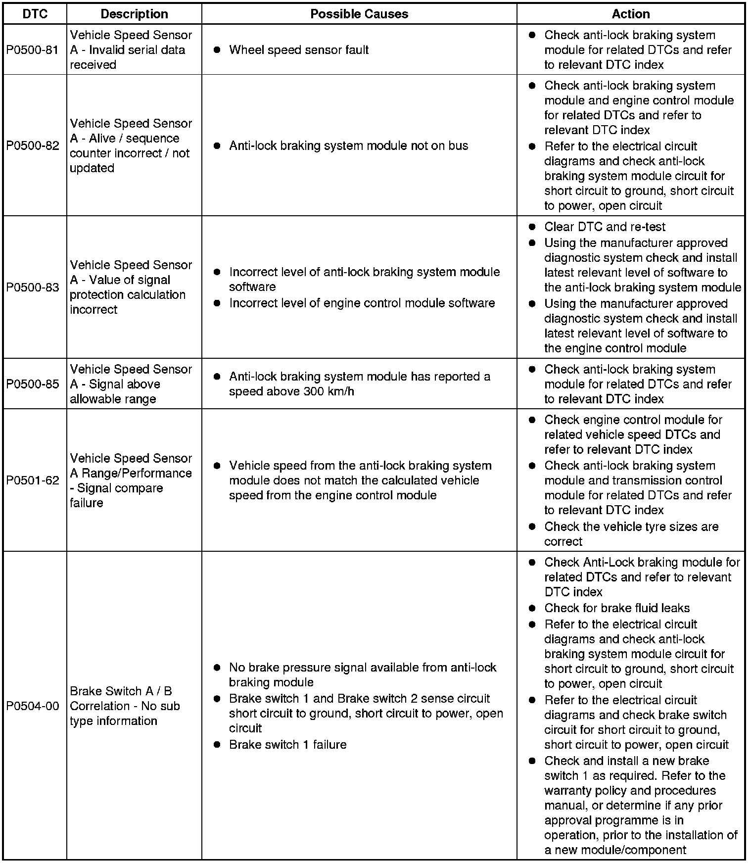 Diagnostic Trouble Code (DTC) Index