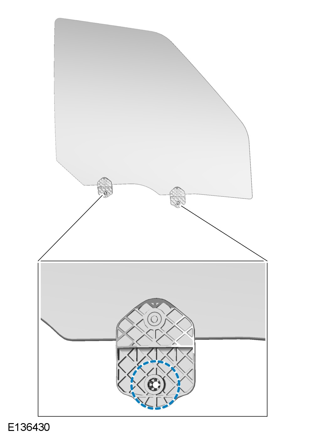 1 Remove the door window glass as necessary. For additional information, refer to Front Door Window Glass Service and Repair