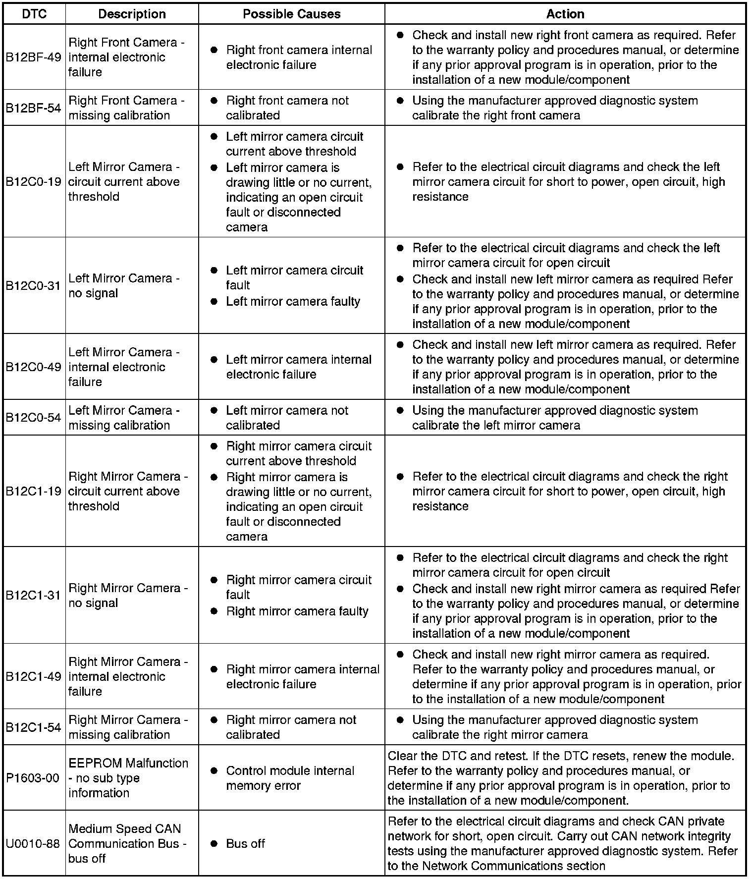 The table below lists all Diagnostic Trouble Codes (DTCs) that could be logged in the Image Processing Module B, for additional Diagnosis and Testing information refer to the relevant Diagnosis and Testing Section. For additional information, refer to Information and Entertainment System Information and Entertainment System Inspection and Verification