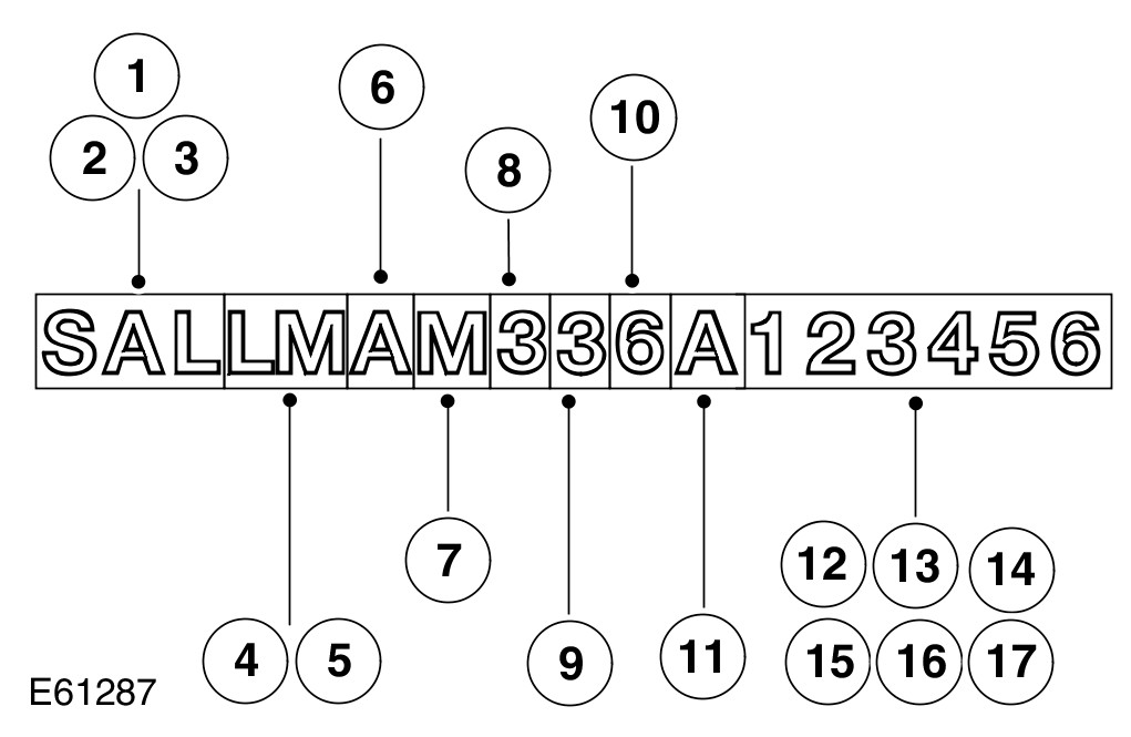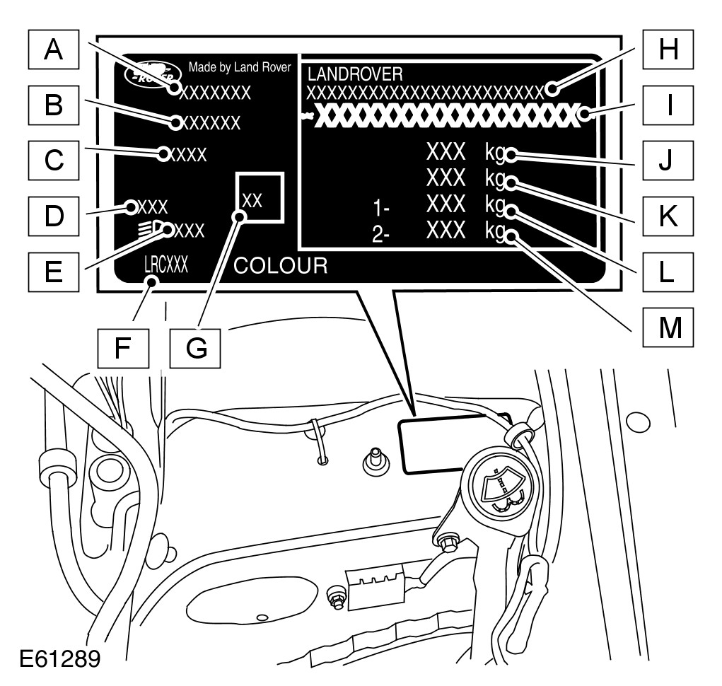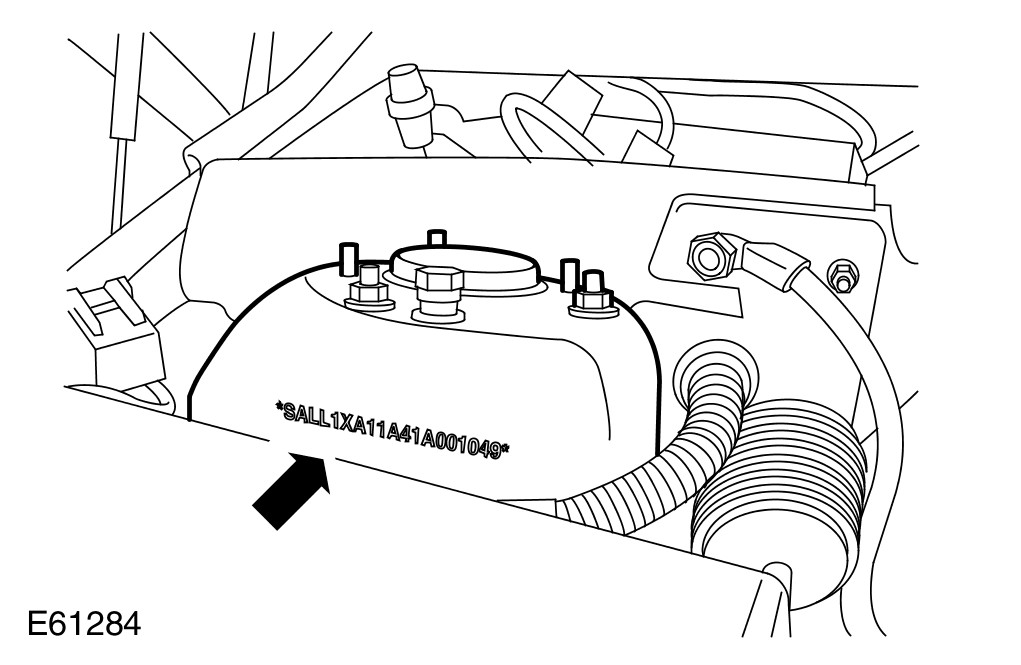 - 3. UK, Europe and ROW - Not NAS/Canada -On the VIN plate attached to the LH inner wing, forward of the suspension turret.
