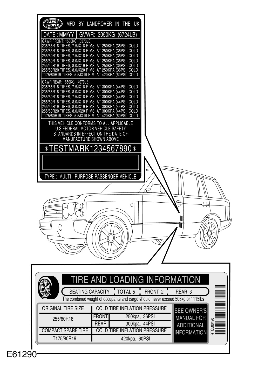 The Tire Pressure Certification Label contains the following VIN information: