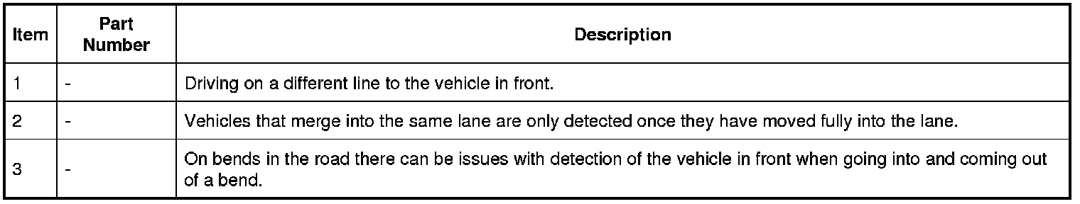 - Vehicles edging into the lane ahead which are not detected by the system until they have moved into the radar beam.