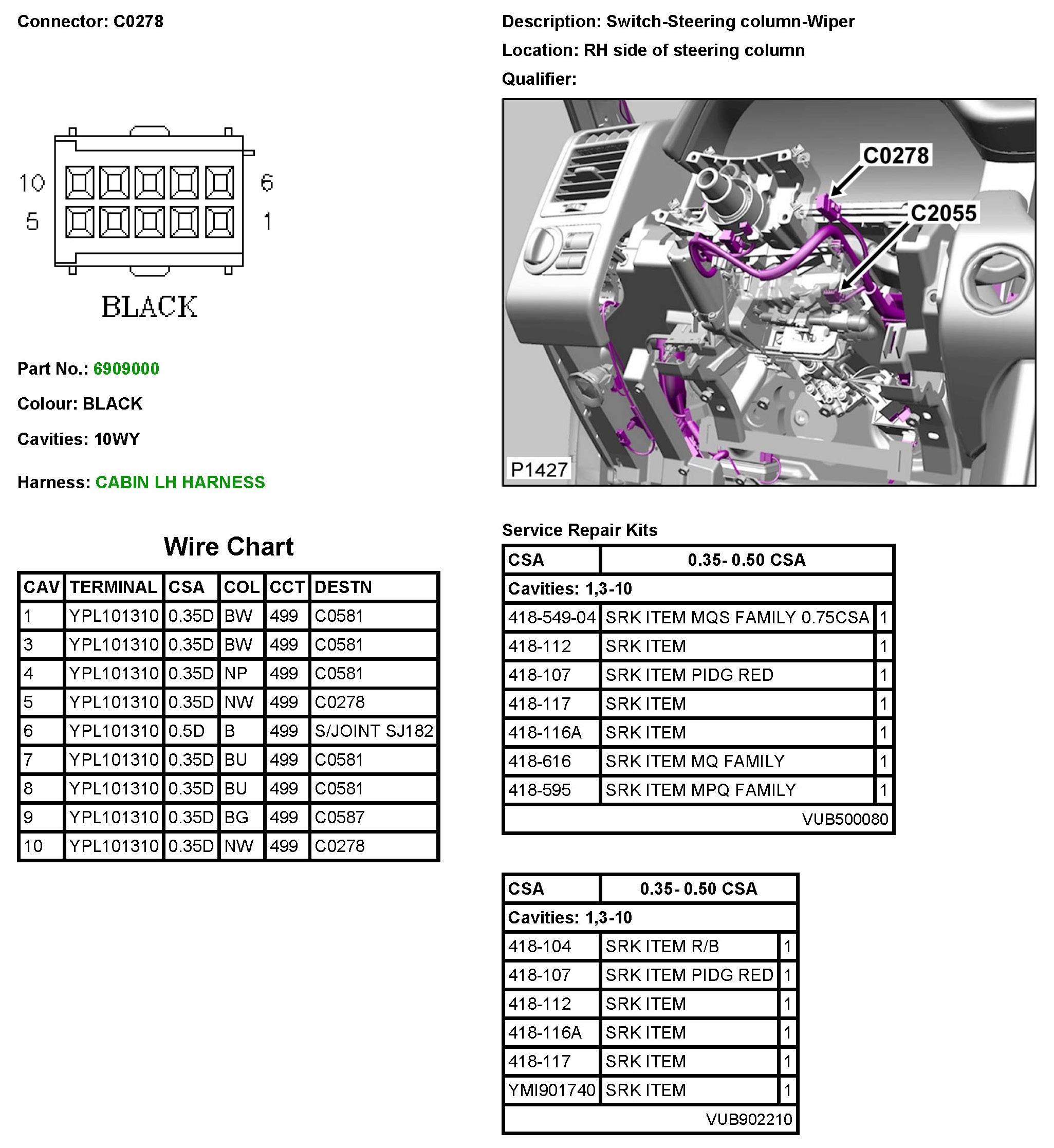 C0278 Switch-Steering Column-Wiper