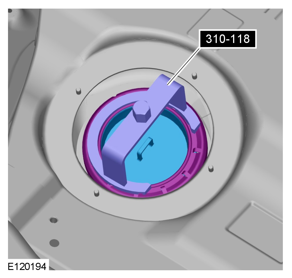 - Using the special tool, remove the fuel sender cover locking ring.