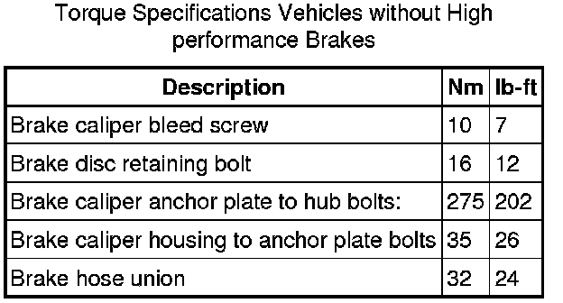 Front Disc Brake Specifications