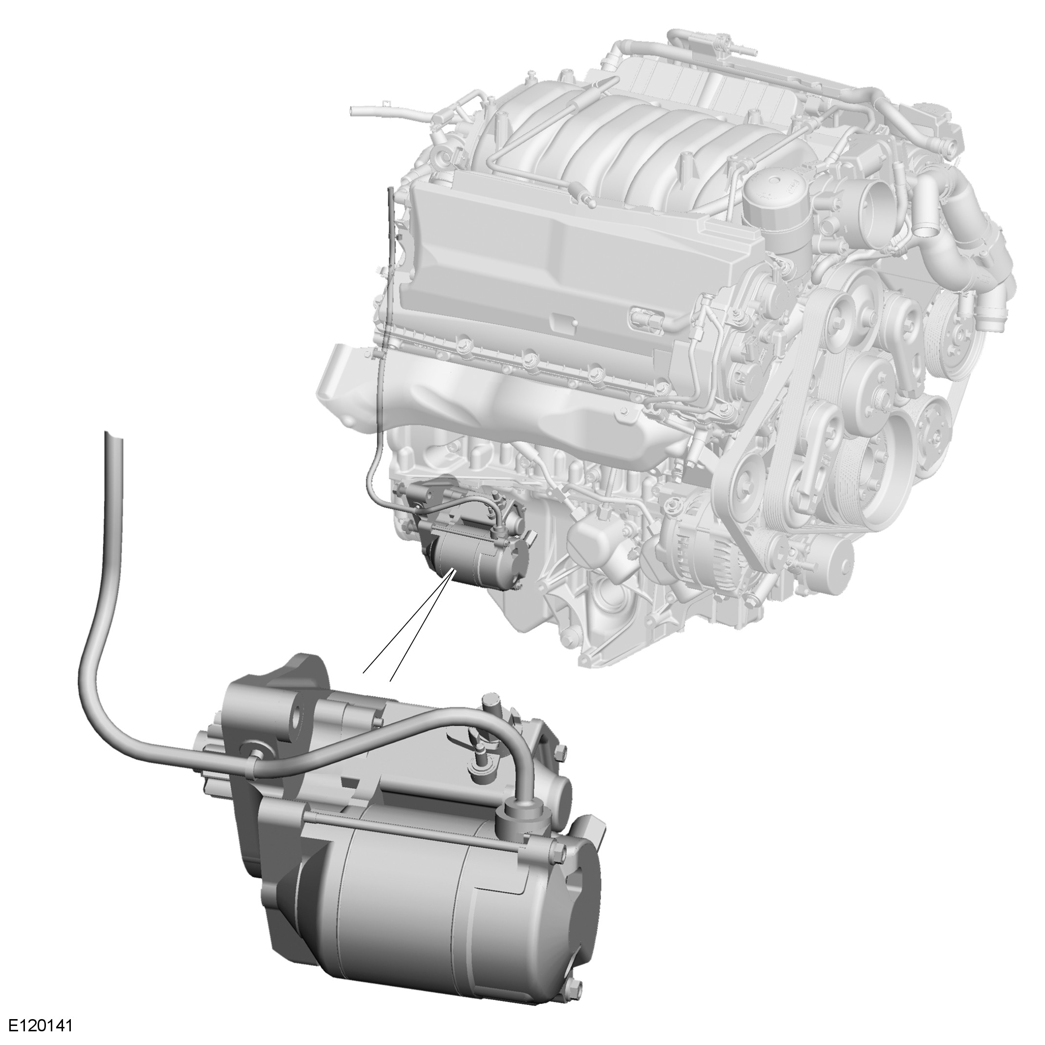 The starter motor is located on the rear right side of the engine sump. The motor is installed in an aperture in the sump and the pinion is engaged with the ring gear of the crankshaft drive plate.