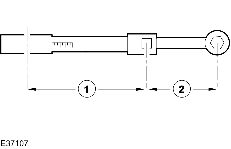 Step 2. Add the effective length of the special tool (2) to the effective length of the torque wrench (1).