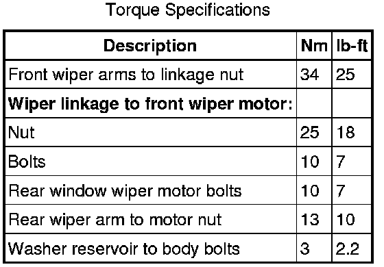 Wiper and Washer Systems: Specifications