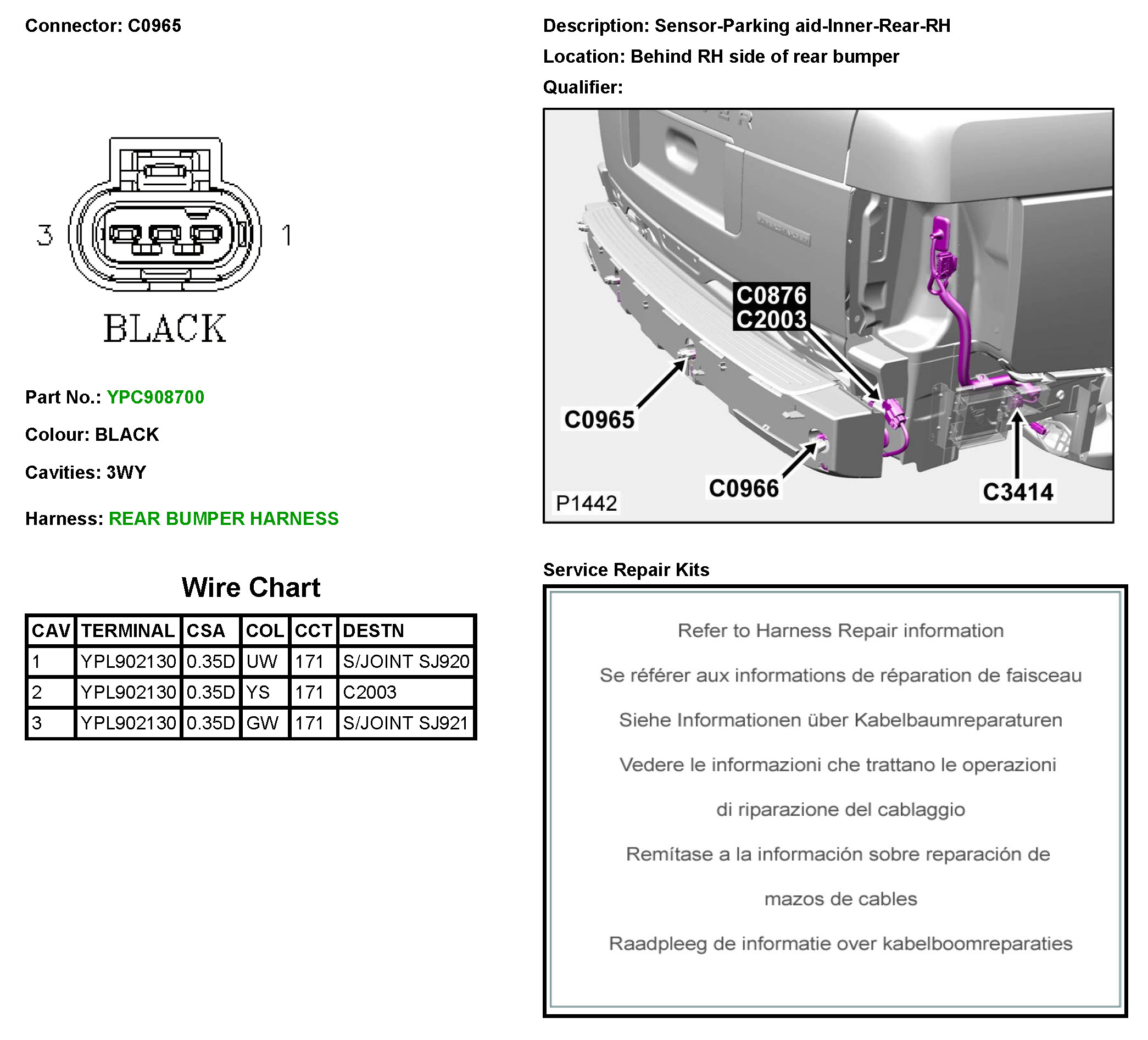 C0965 Sensor-Parking aid-Inner-Rear-RH