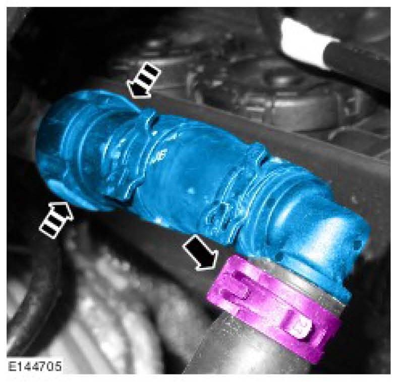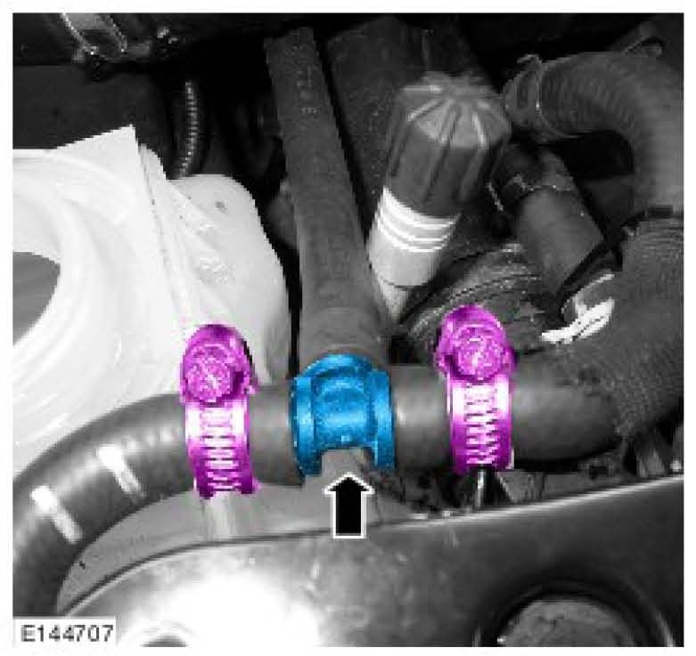 *6. Install the new coolant hose (LR04428) and hose from kit LR040874:*