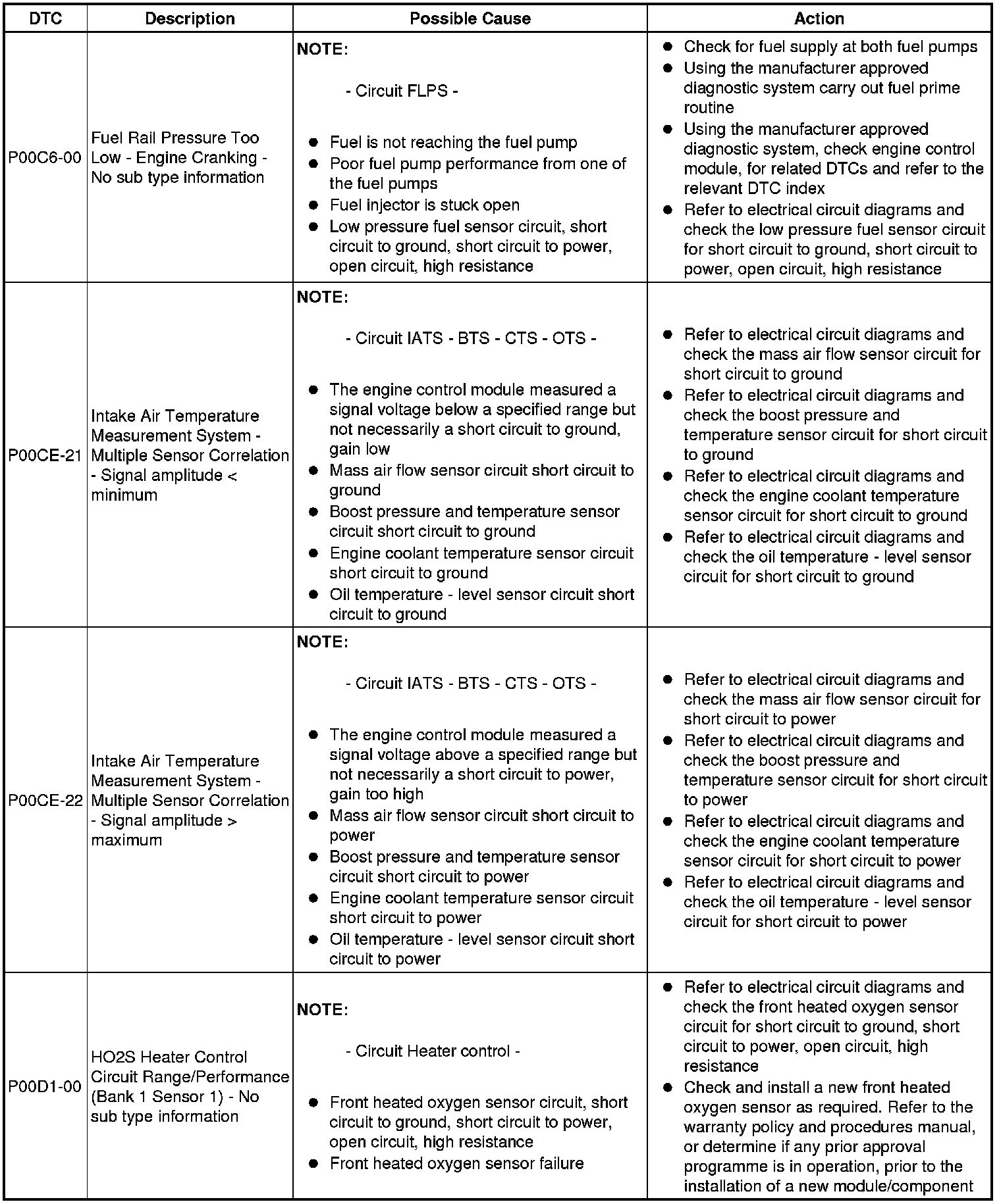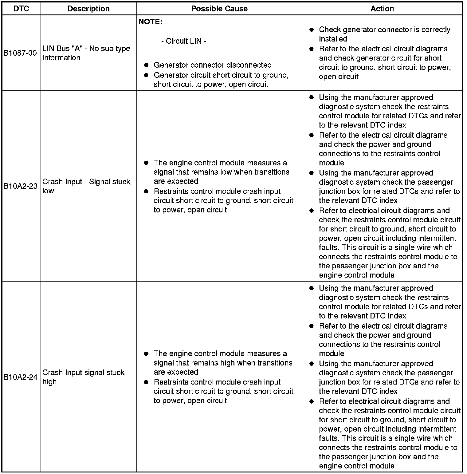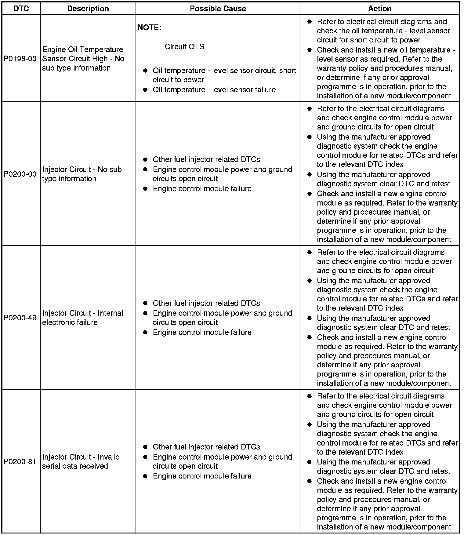 Diagnostic Trouble Code (DTC) Index [GTDi 2.0L Petrol, DTC: Engine Control Module (PCM), B1087-93 to P0200-81