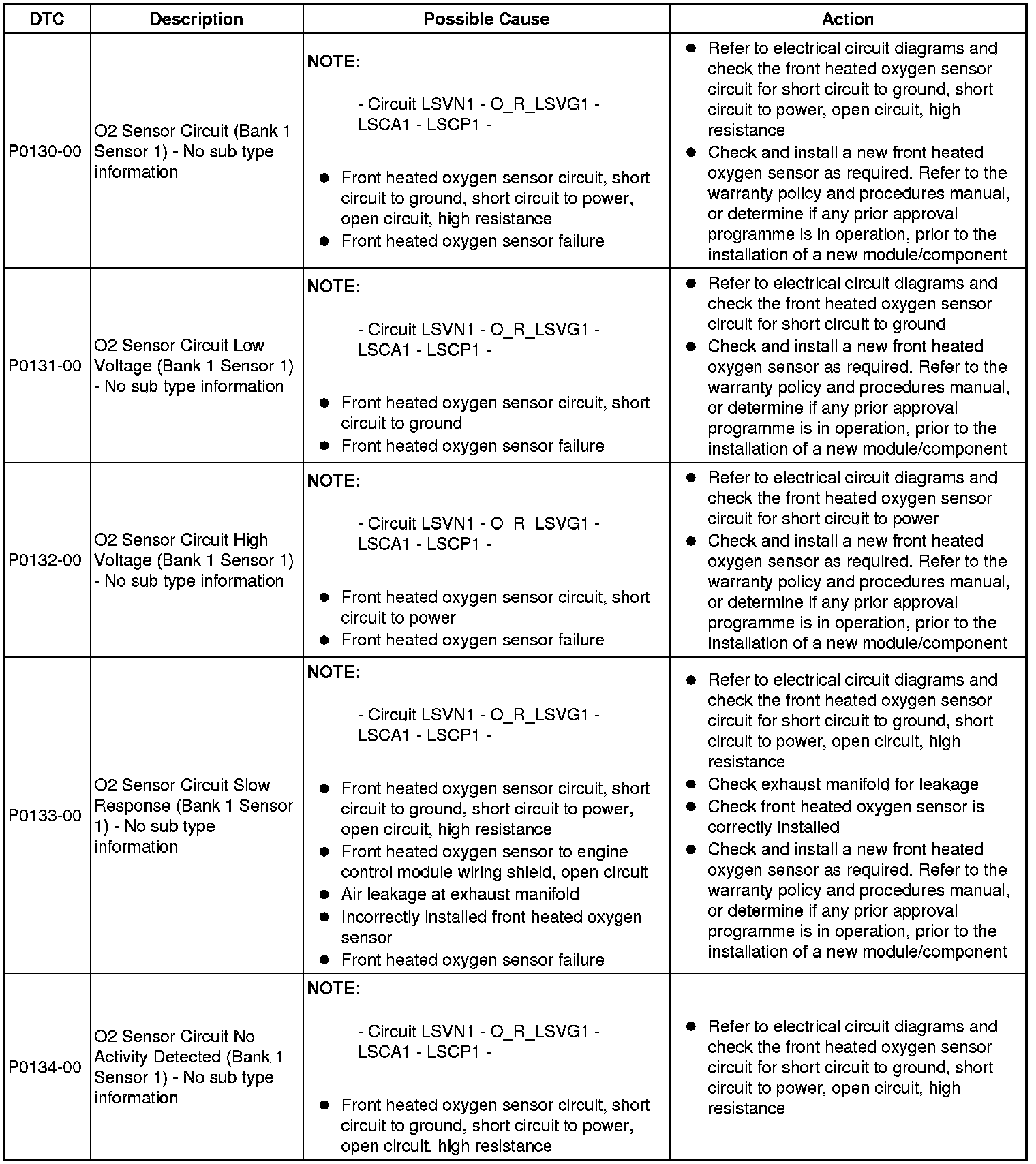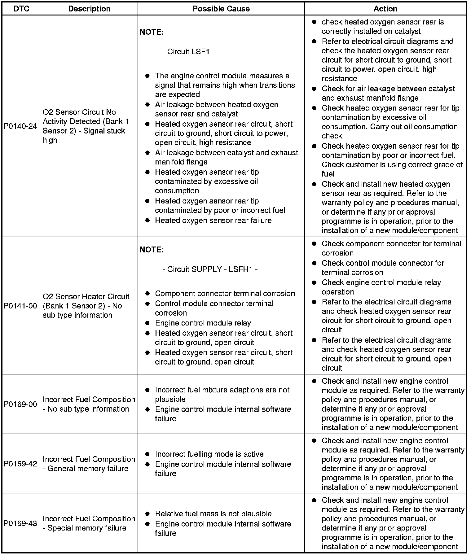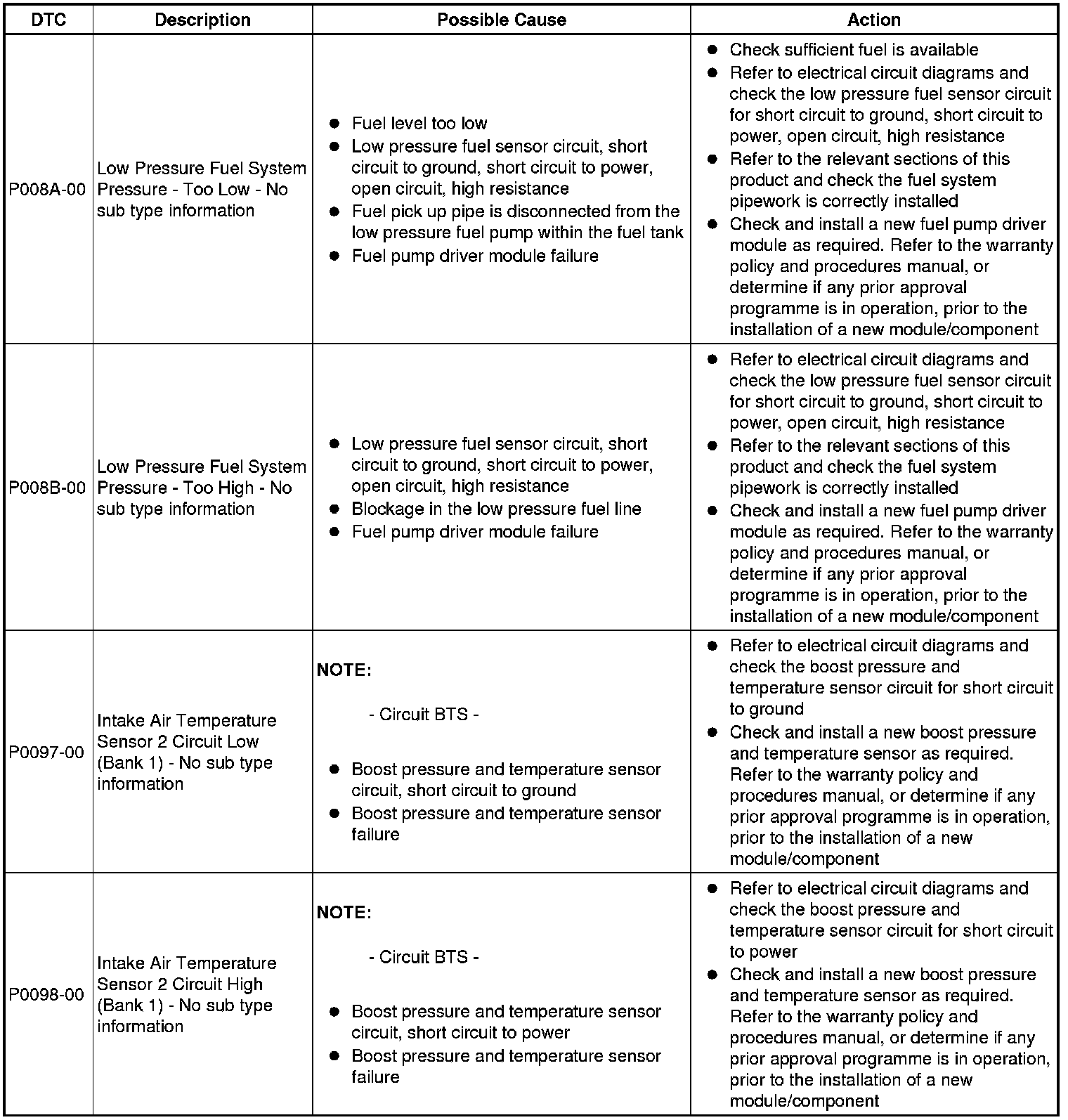 Diagnostic Trouble Code (DTC) Index [GTDi 2.0L Petrol, DTC: Engine Control Module (PCM), B1087-93 to P0200-81