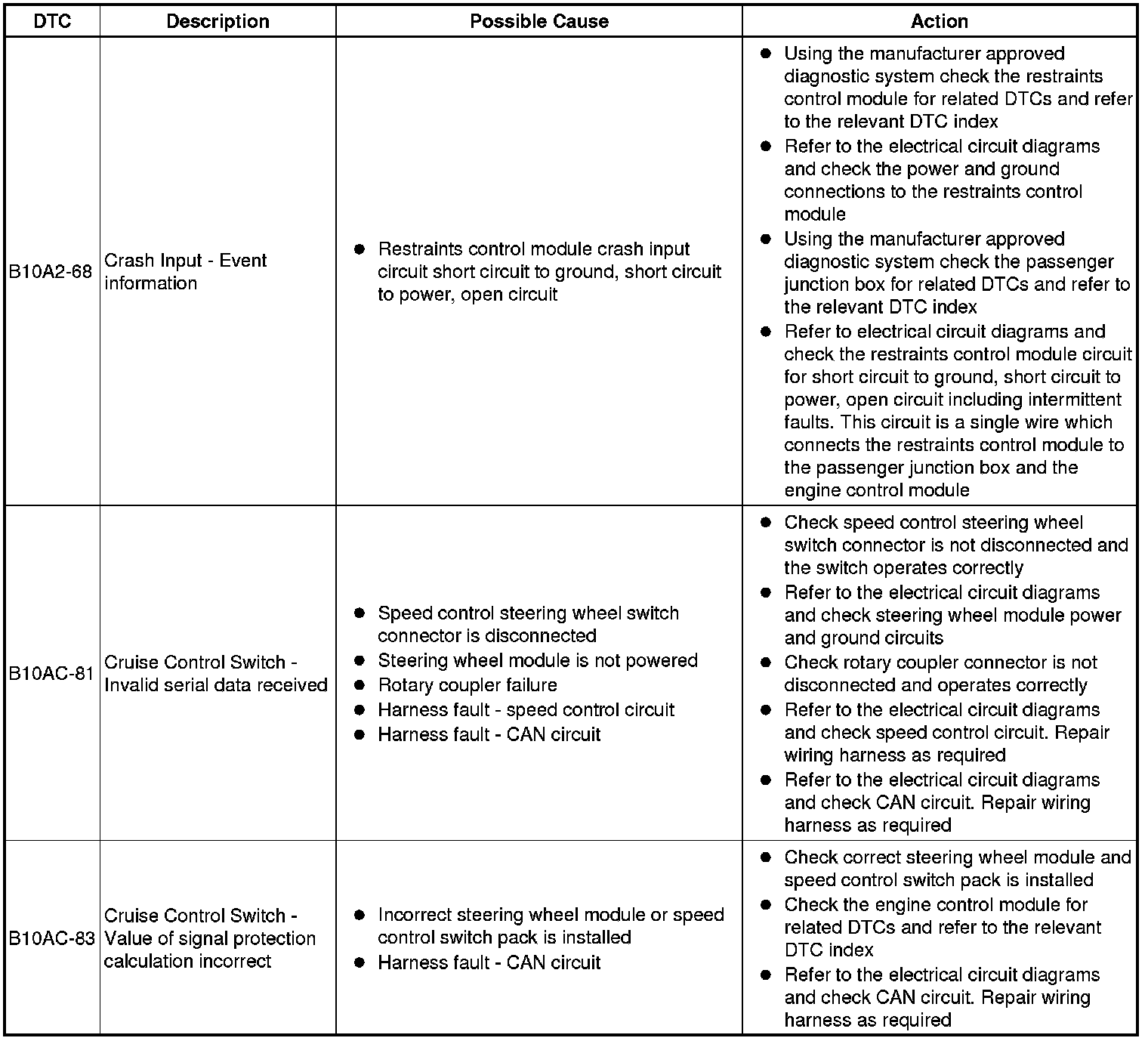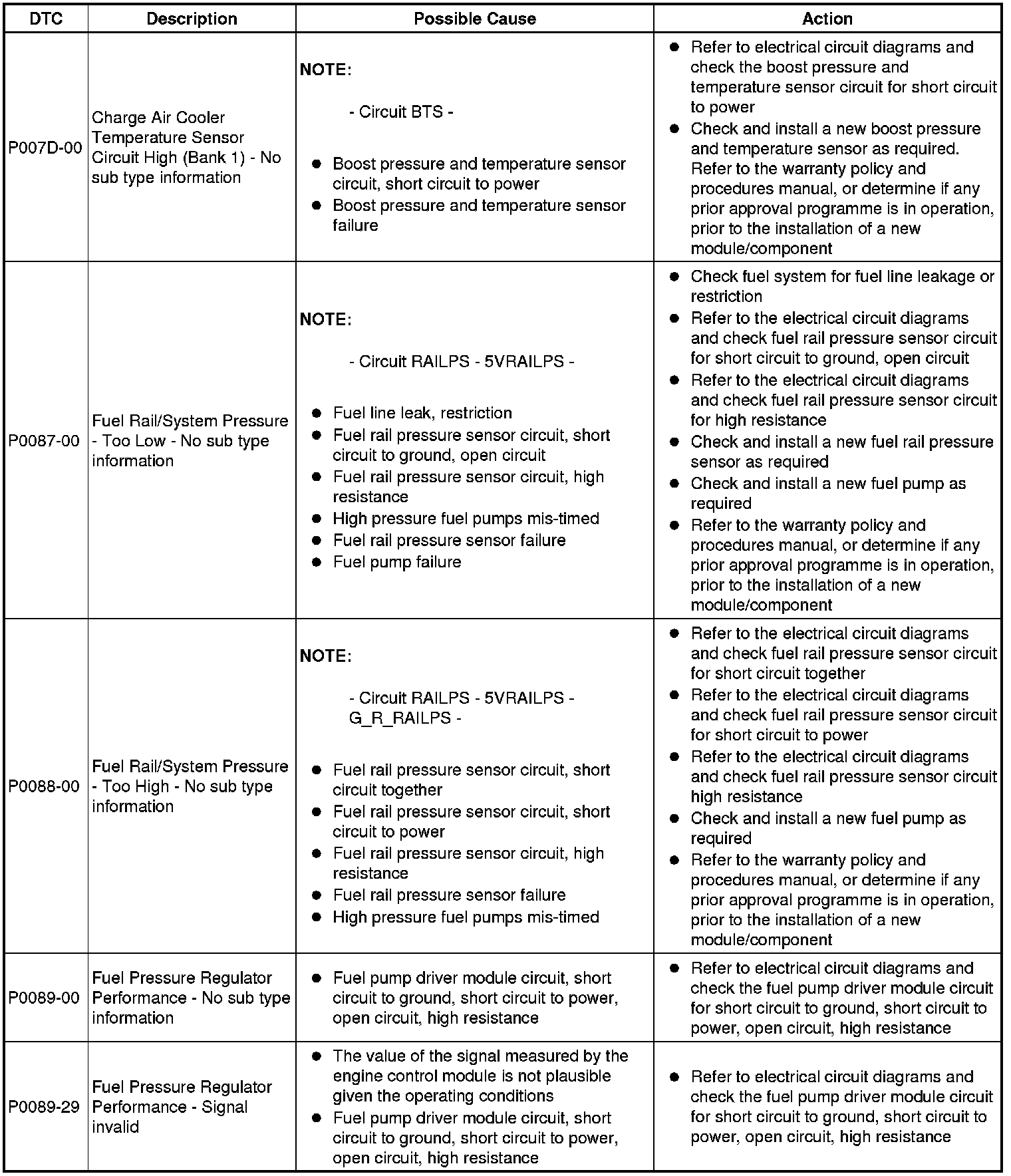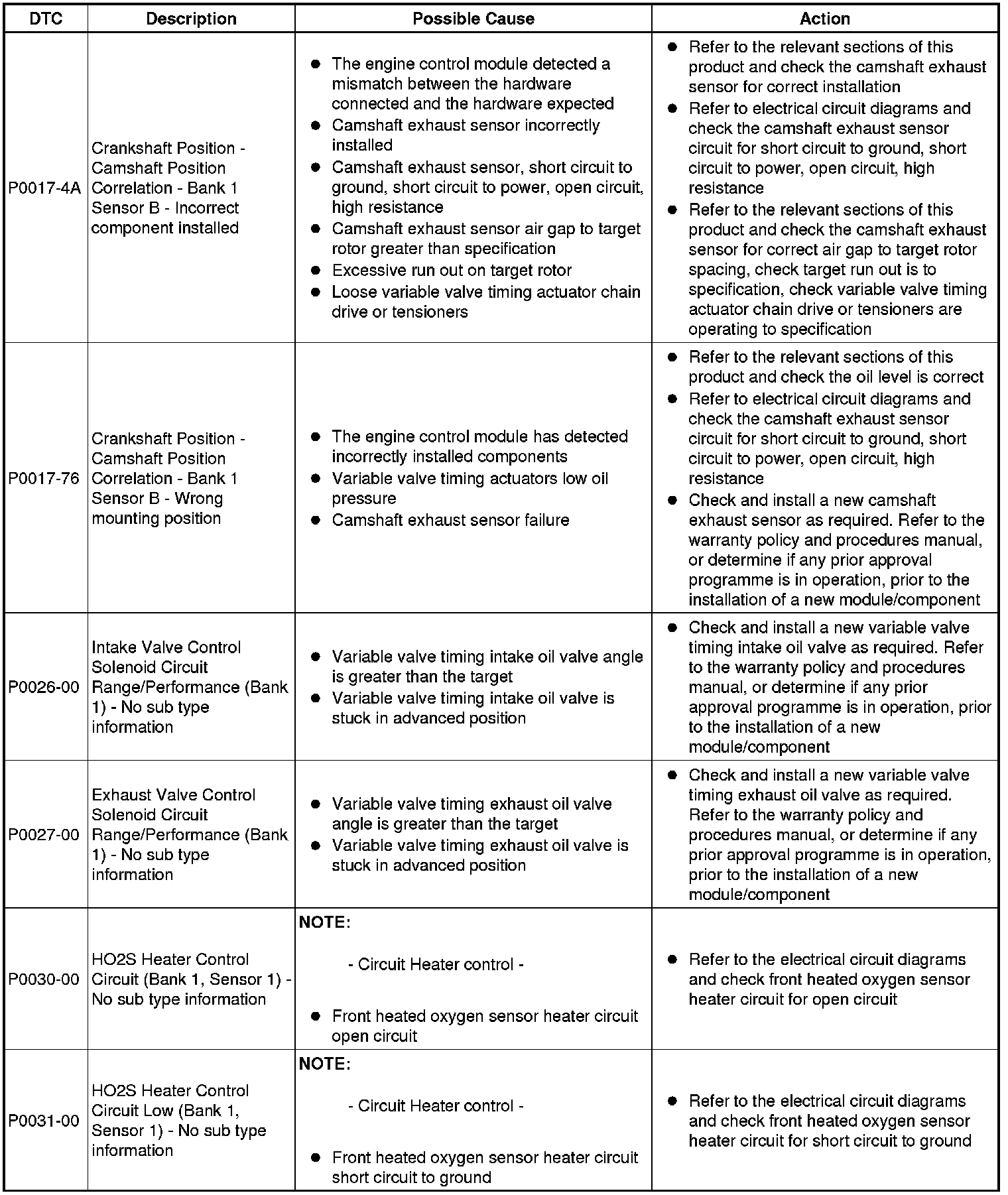 Generic scan tools may not read the codes listed, or may read only five digit codes. Match the five digits from the scan tool to the first five digits of the seven digit code listed to identify the fault (the last two digits give additional information read by the manufacturer-approved diagnostic system).