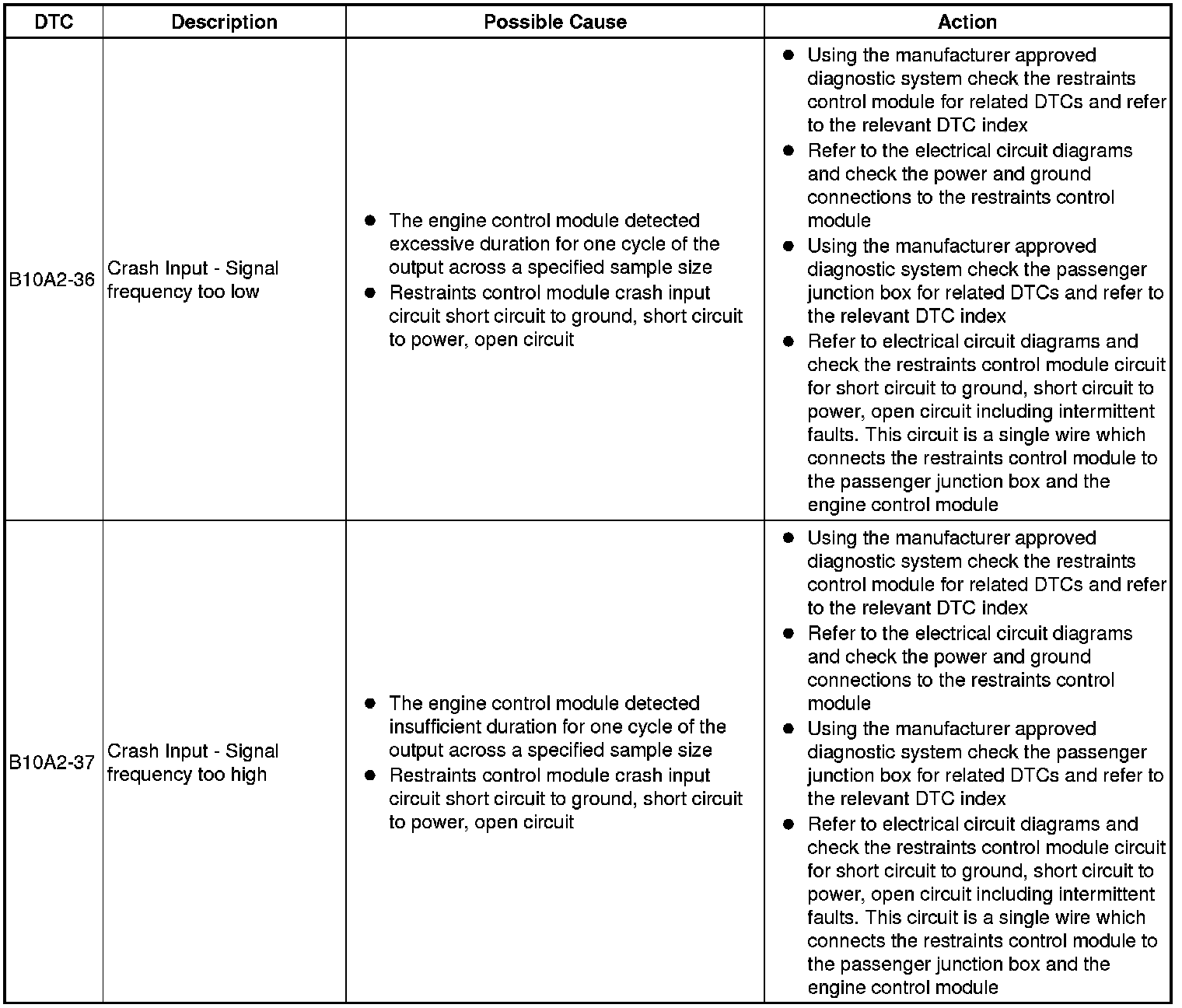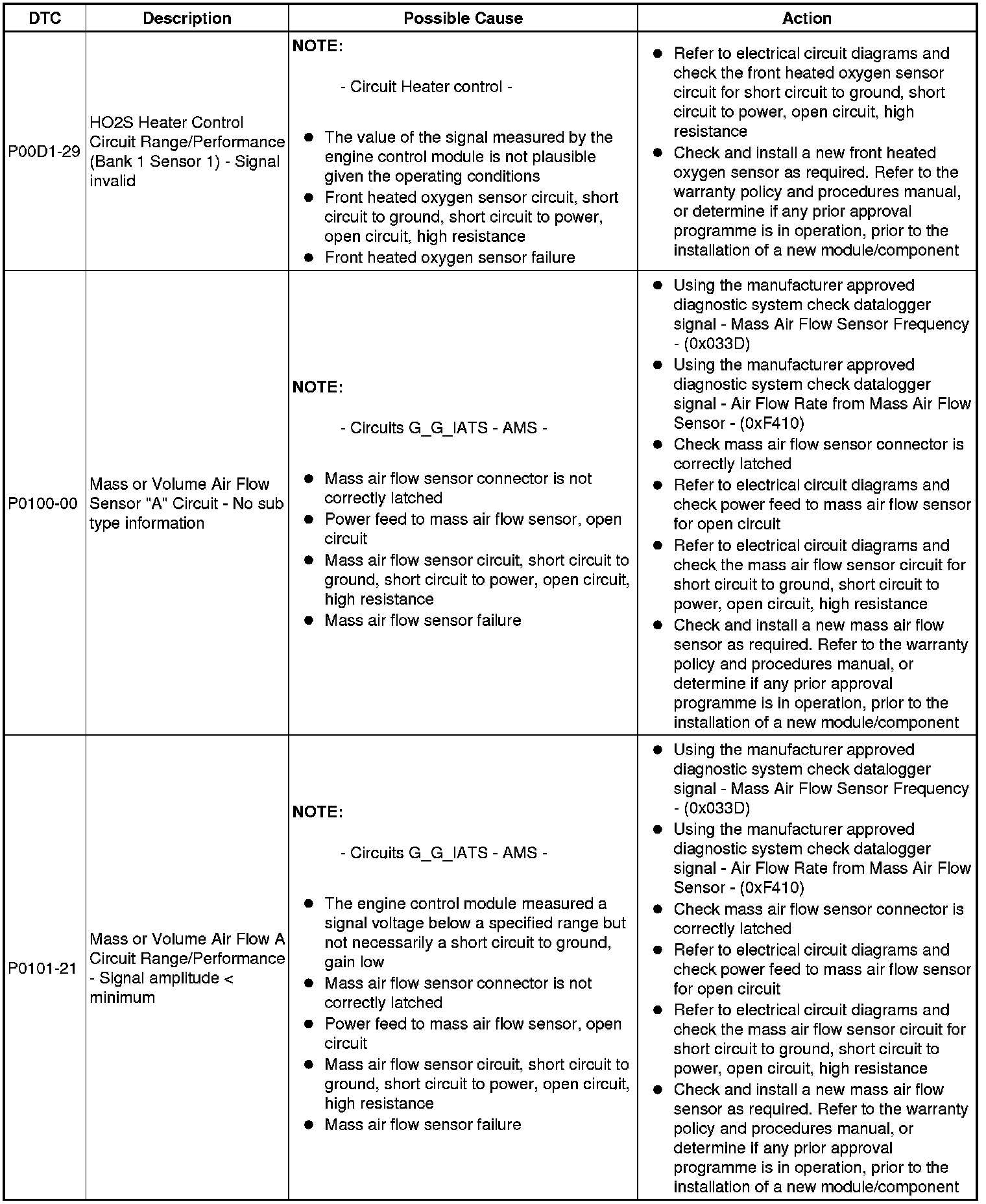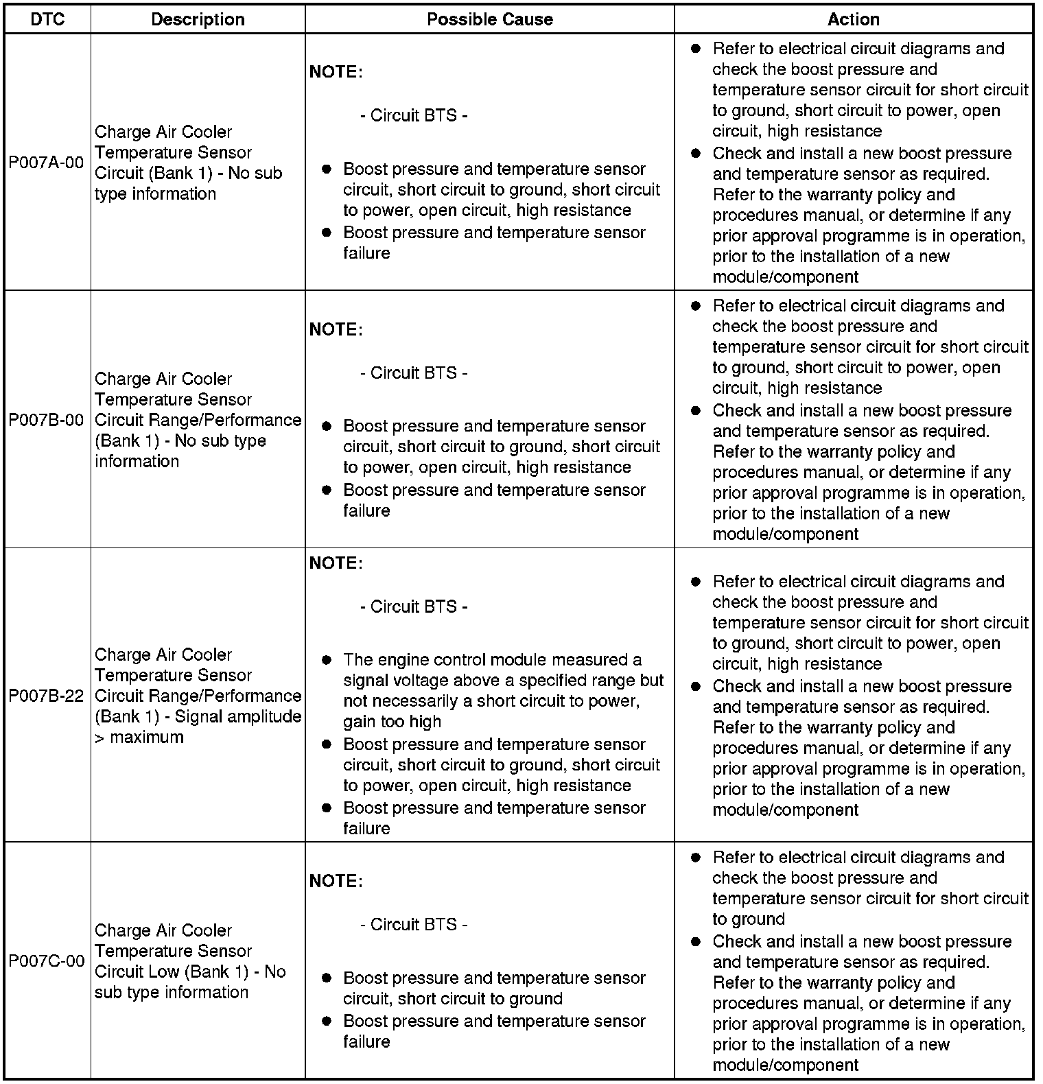 Generic scan tools may not read the codes listed, or may read only five digit codes. Match the five digits from the scan tool to the first five digits of the seven digit code listed to identify the fault (the last two digits give additional information read by the manufacturer-approved diagnostic system).