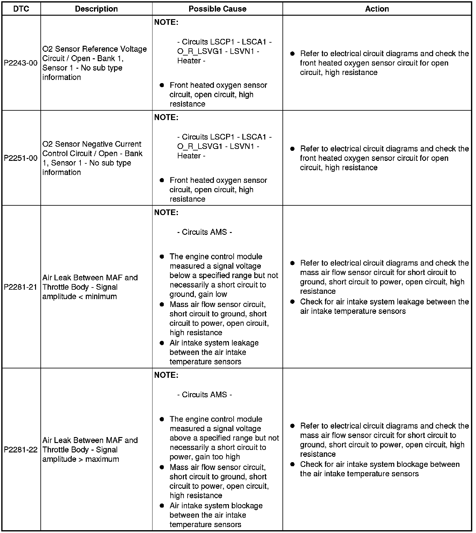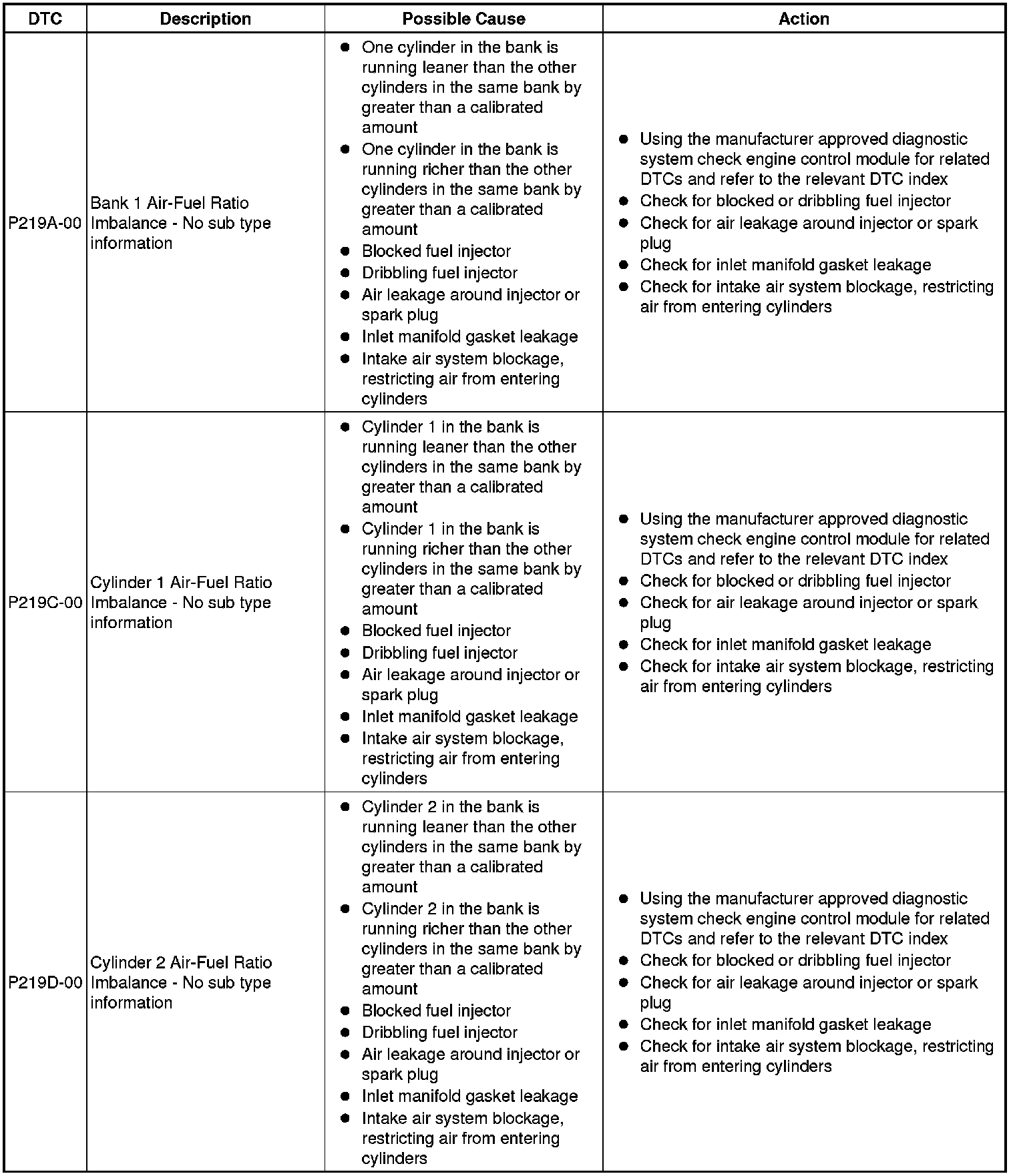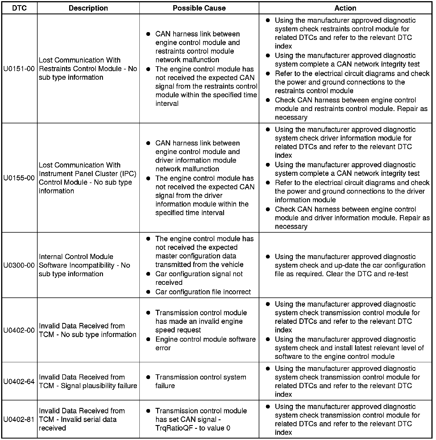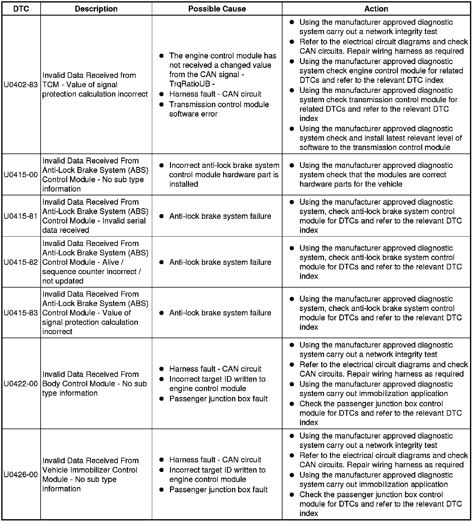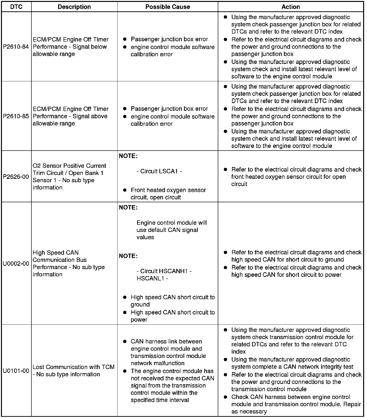 Generic scan tools may not read the codes listed, or may read only five digit codes. Match the five digits from the scan tool to the first five digits of the seven digit code listed to identify the fault (the last two digits give additional information read by the manufacturer-approved diagnostic system).