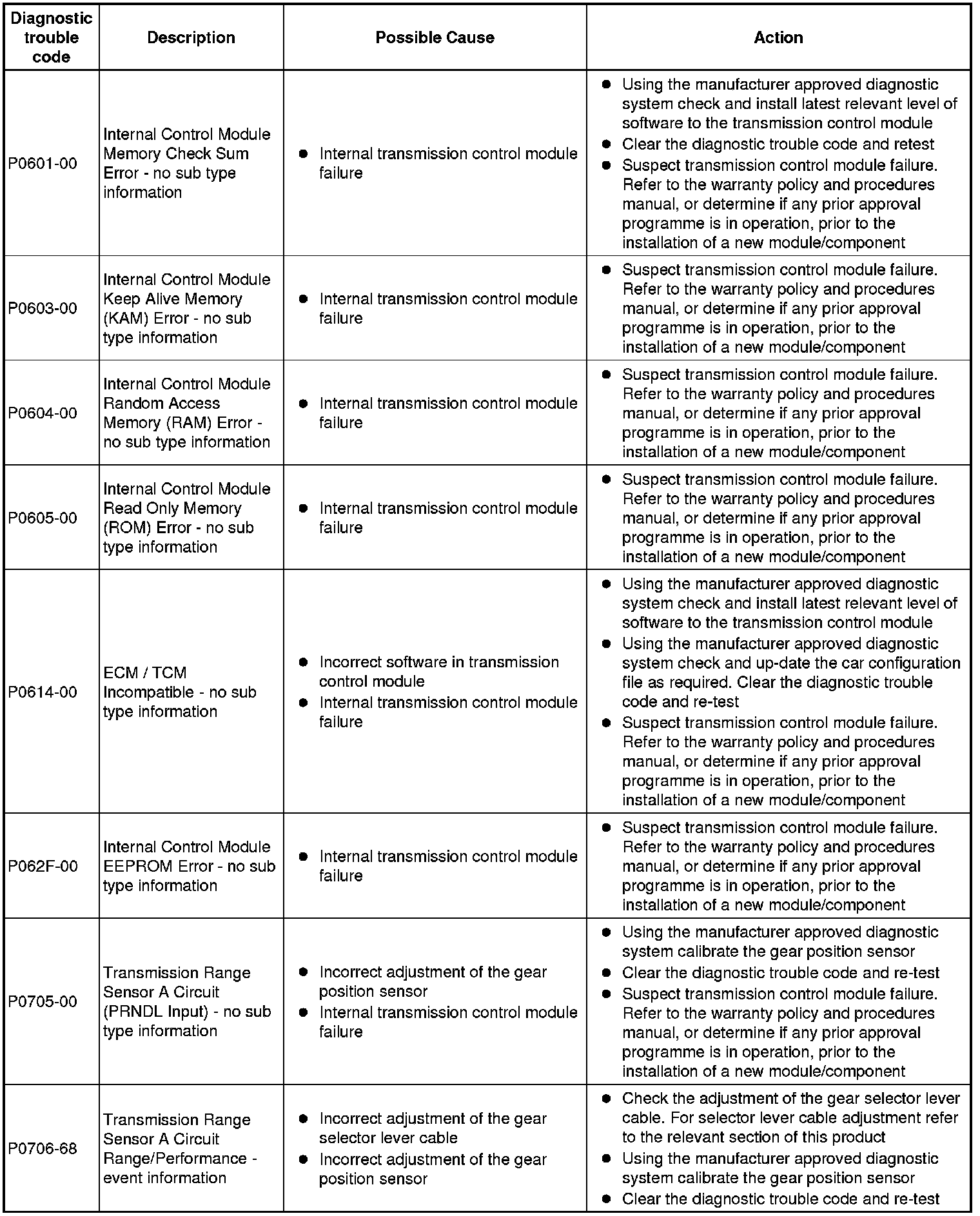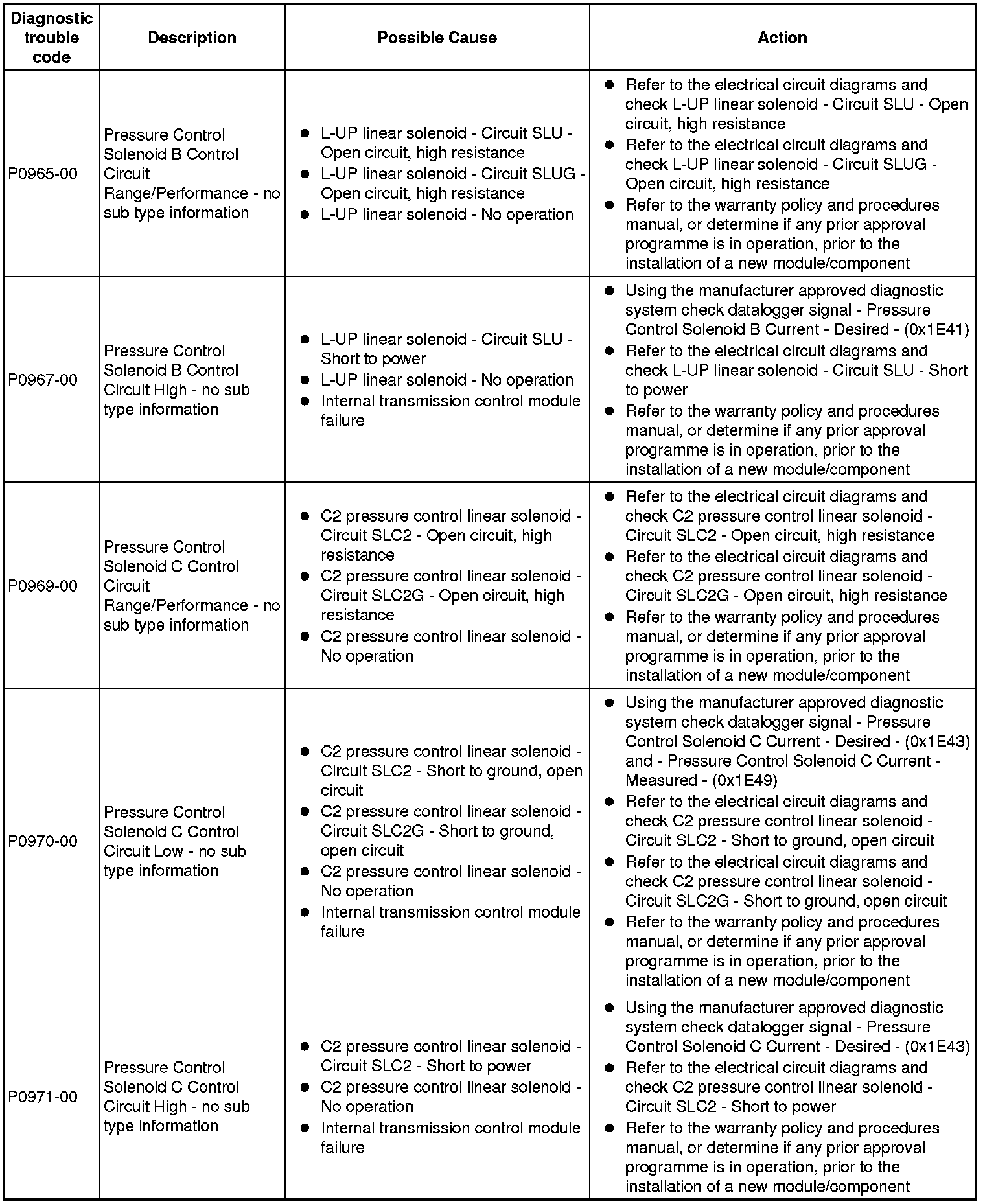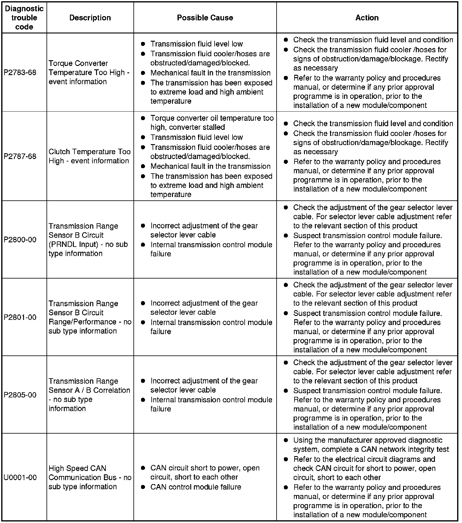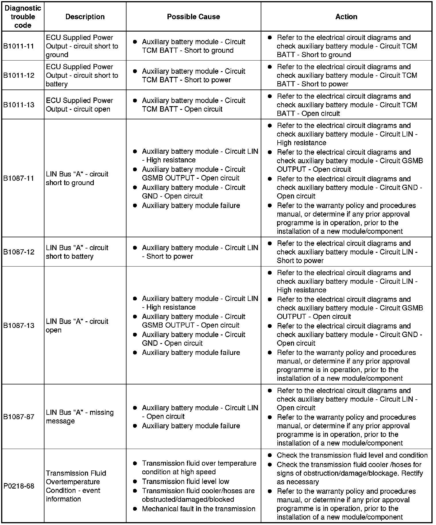 If the control module or a component is suspect and the vehicle remains under manufacturer warranty, refer to the warranty policy and procedures manual (section B1.2), or determine if any prior approval programme is in operation, prior to the installation of a new module/component