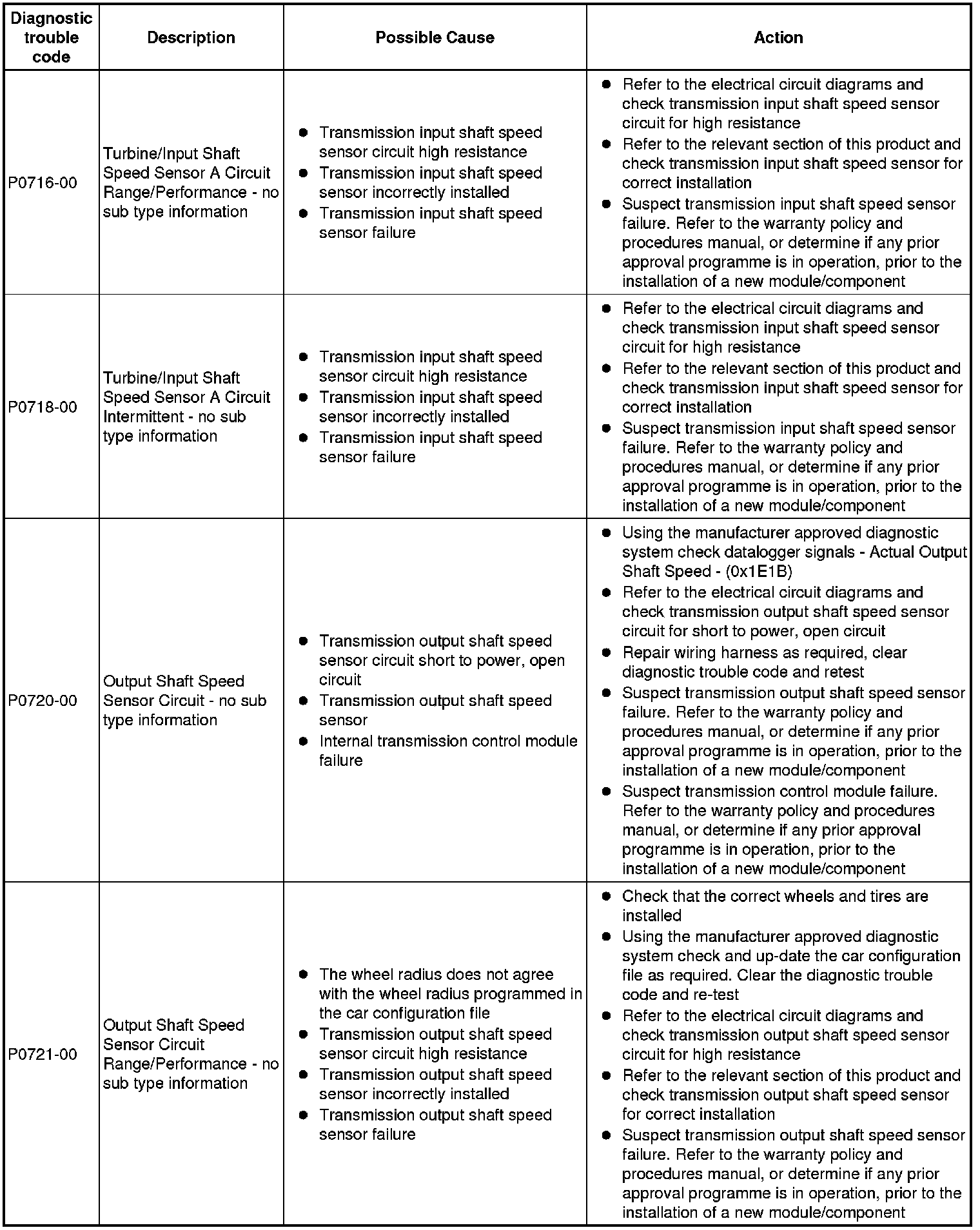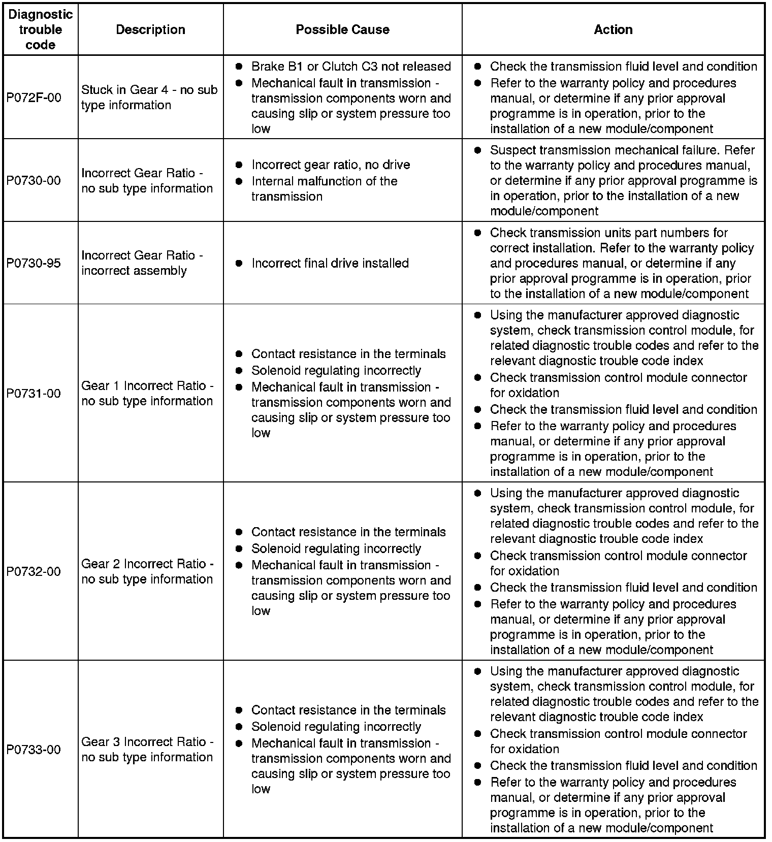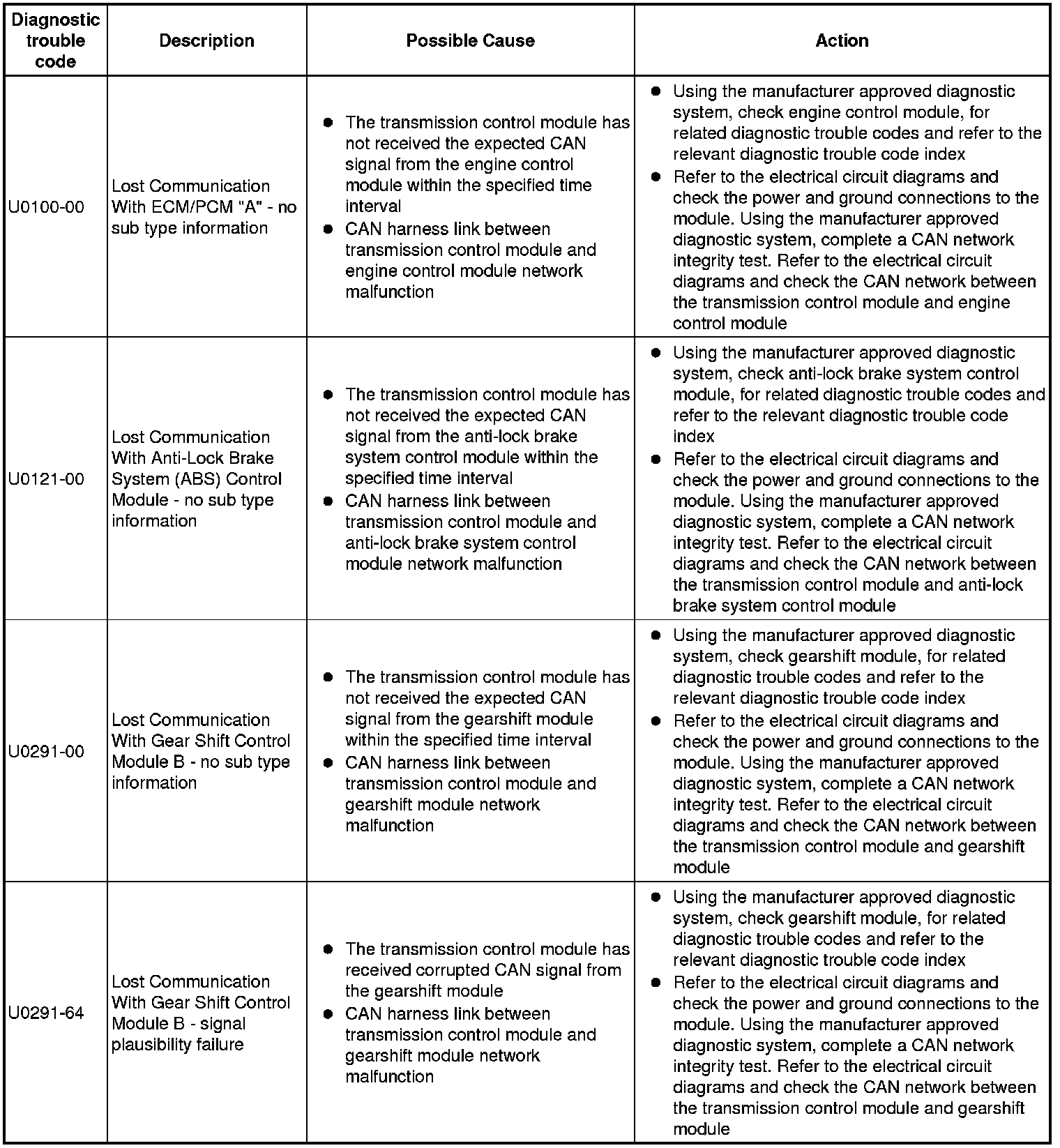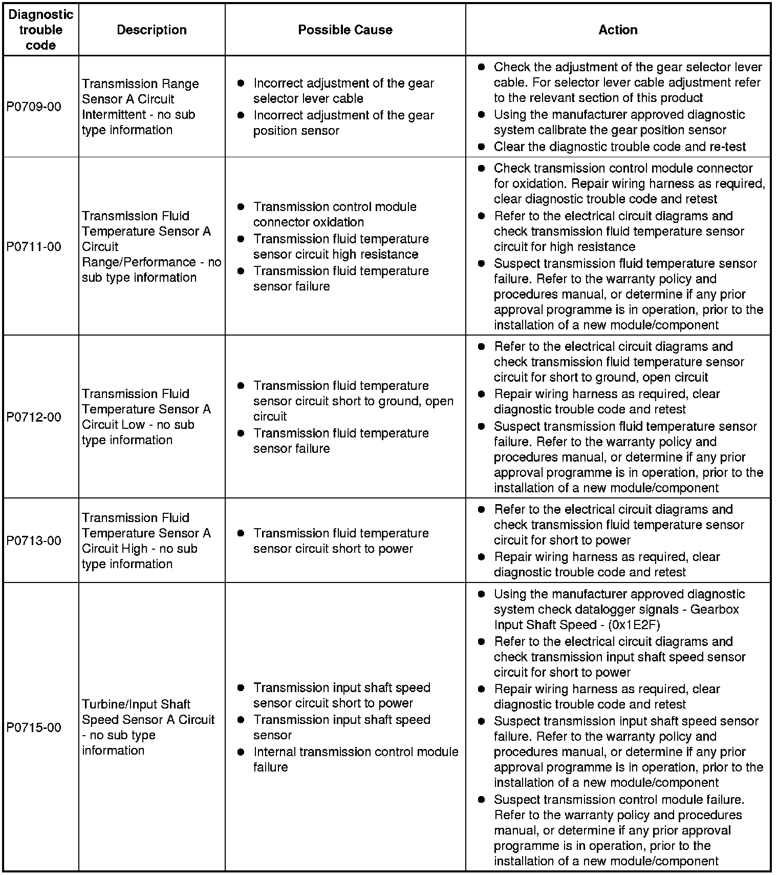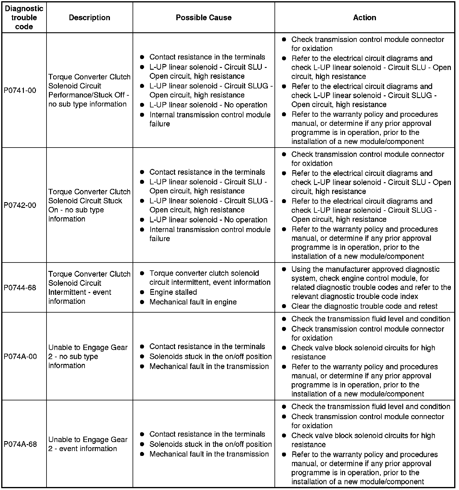Generic scan tools may not read the codes listed, or may read only 5-digit codes. Match the 5 digits from the scan tool to the first 5 digits of the 7-digit code listed to identify the fault (the last 2 digits give extra information read by the manufacturer-approved diagnostic system)