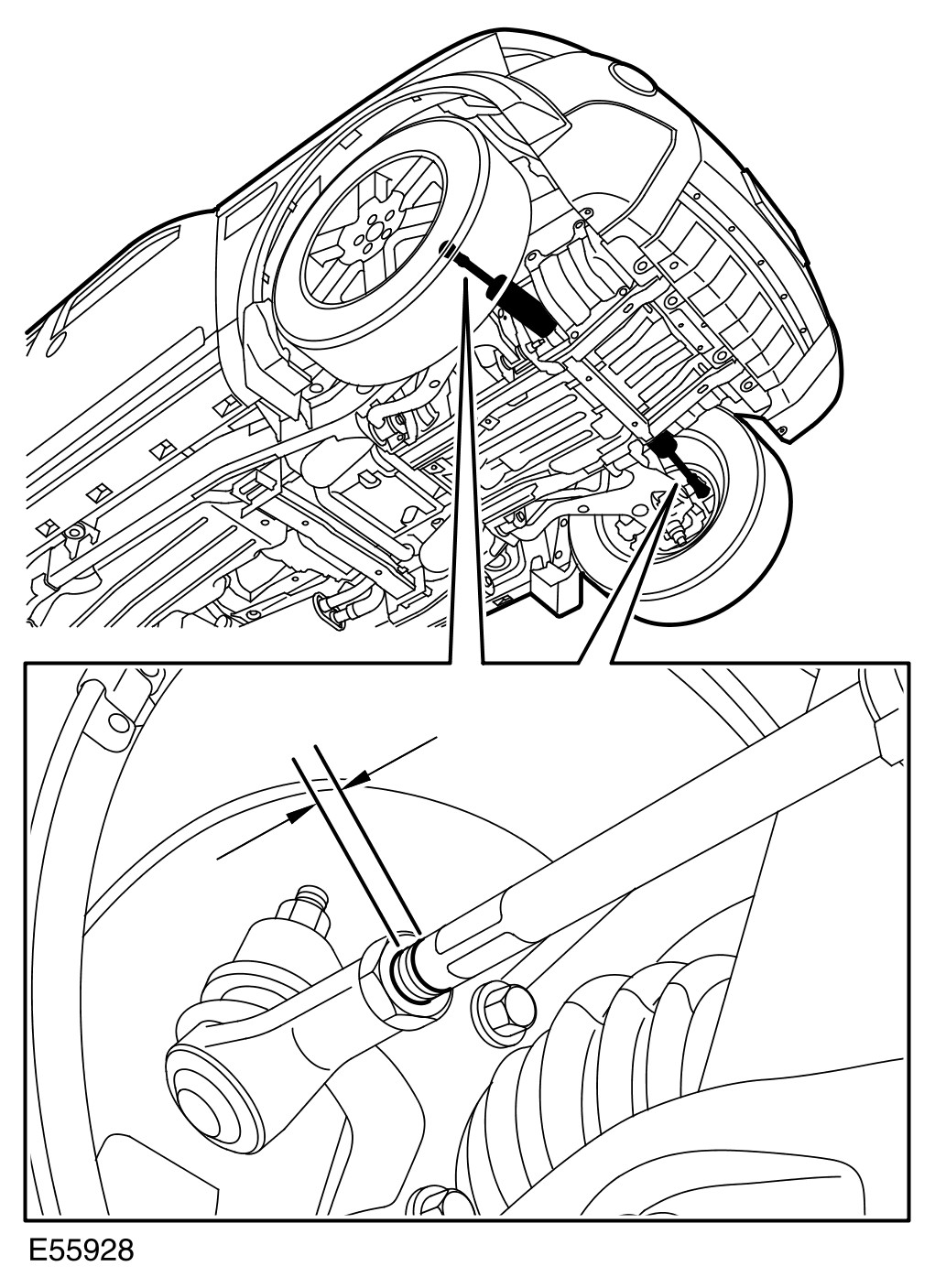 - Tighten the track rod end locking nuts to 53 Nm (39 lb.ft).