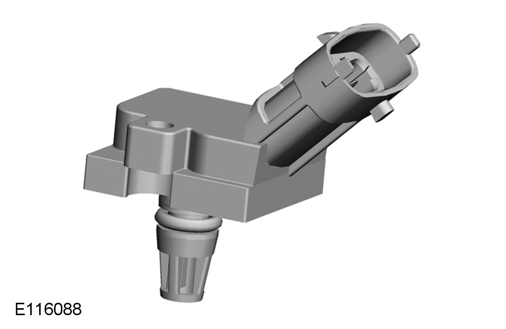 The MAPT (manifold absolute pressure and temperature) sensor is installed in the LH (left-hand) charge air cooler outlet. The sensor is secured with a single screw and sealed with an O-ring. A four pin electrical connector provides the interface with the engine harness.