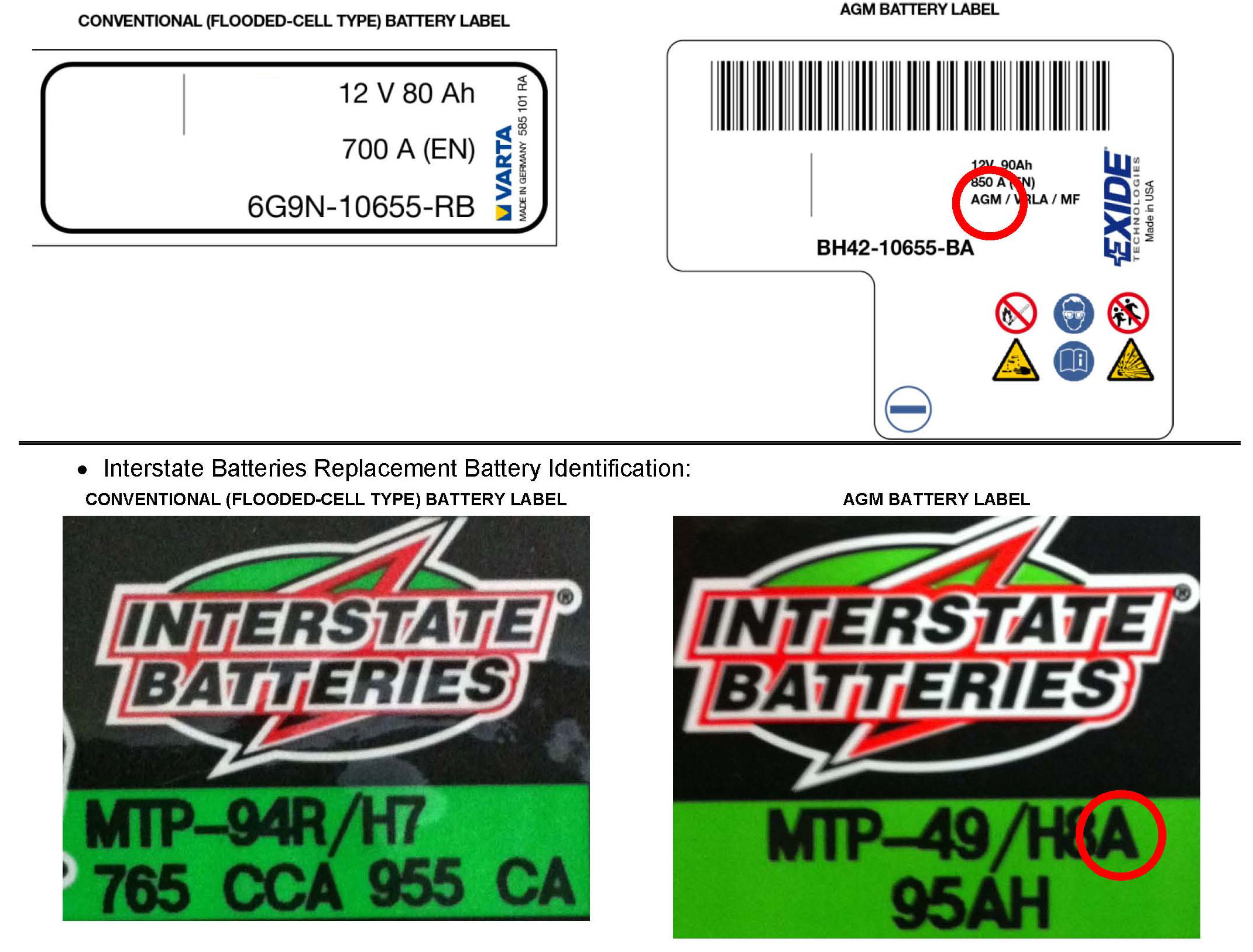 1. Use the existing battery label to identify the battery as either 'flooded' or 'AGM'