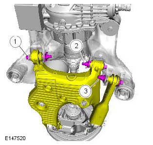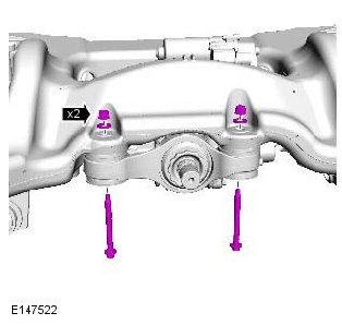 - Discard the lower control arm front retaining nut and bolt.