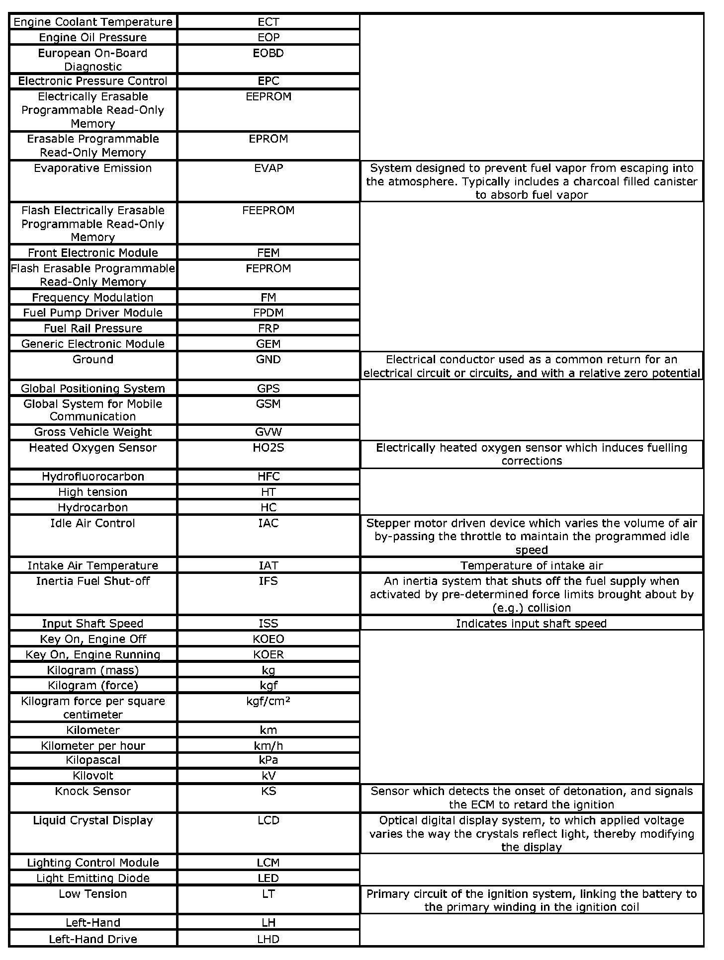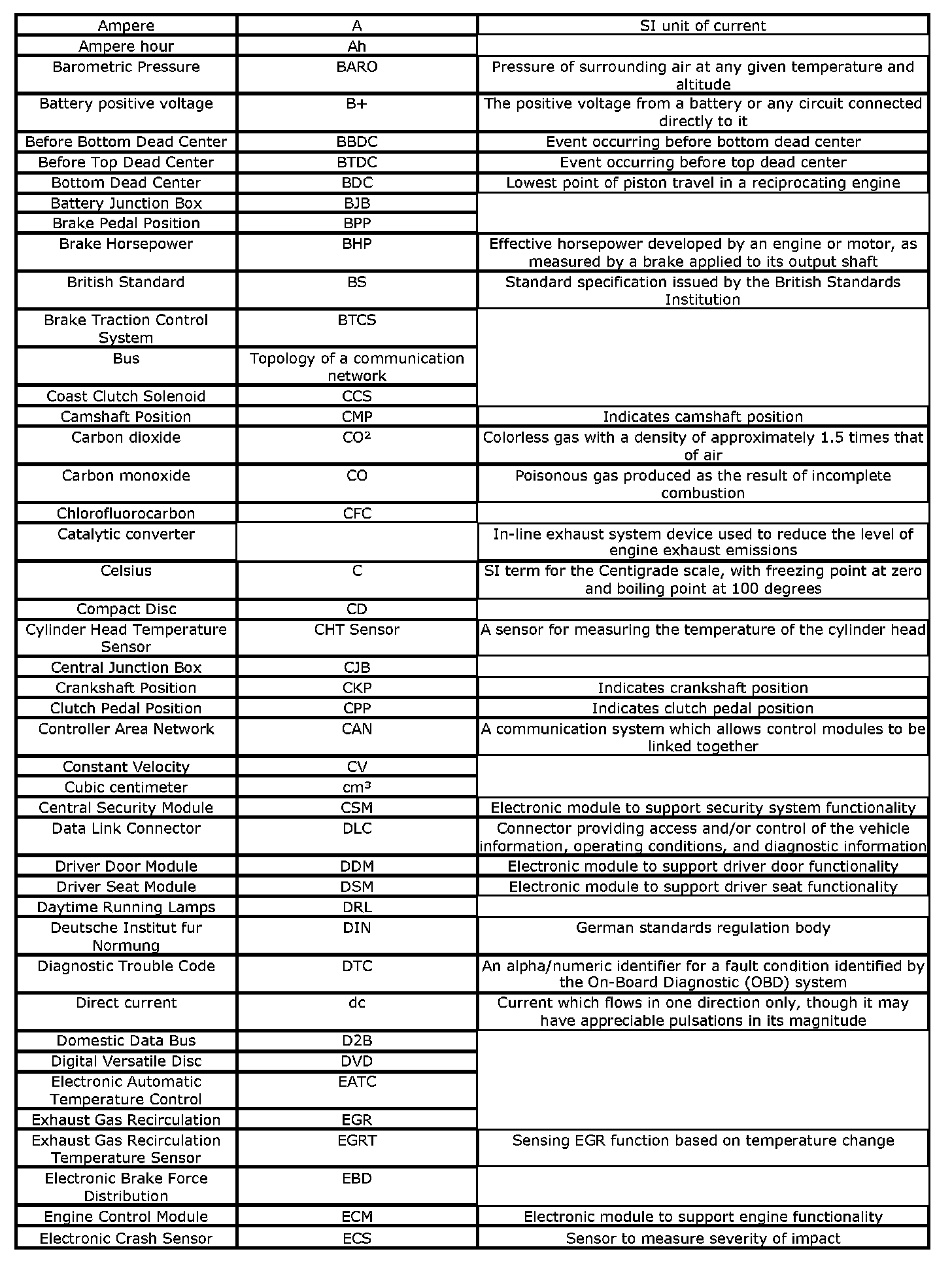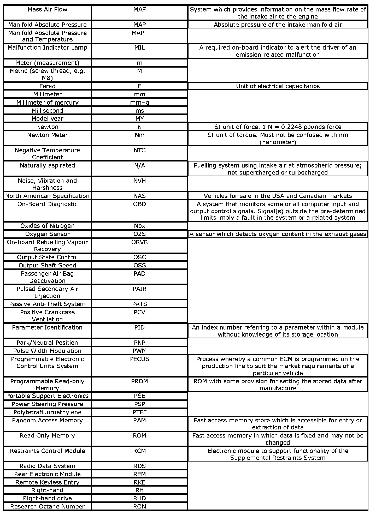 This glossary of terms is intended to cover mainly emissions-related (to SAE J 1930) terminology, and other abbreviations that may be used.