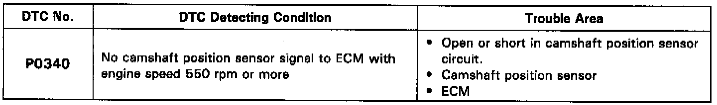 DTC P0340 Camshaft Position Sensor Circuit Malfunction