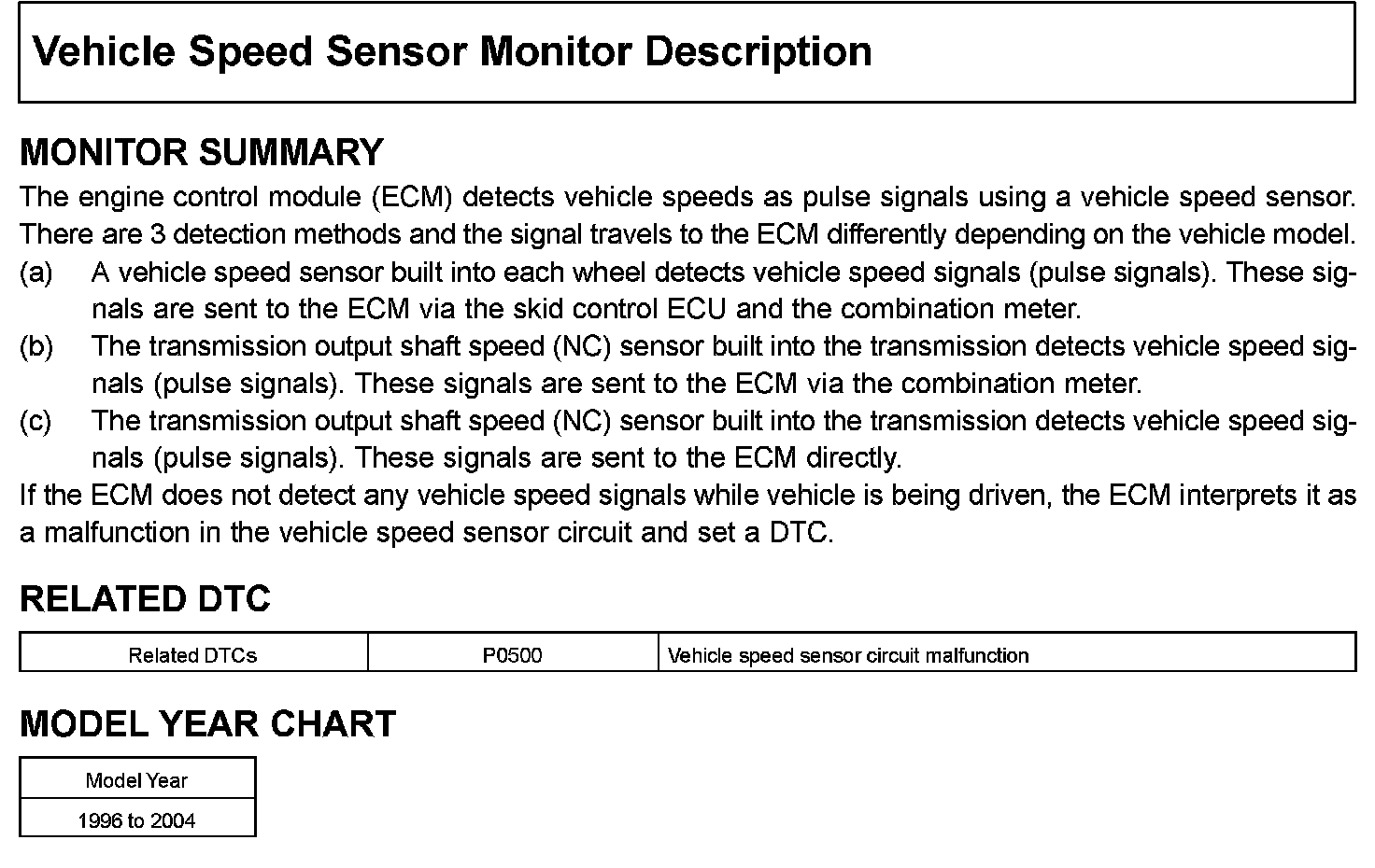Vehicle Speed Sensor Monitor Description