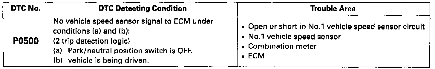 DTC P0500 Vehicle Speed Sensor Malfunction