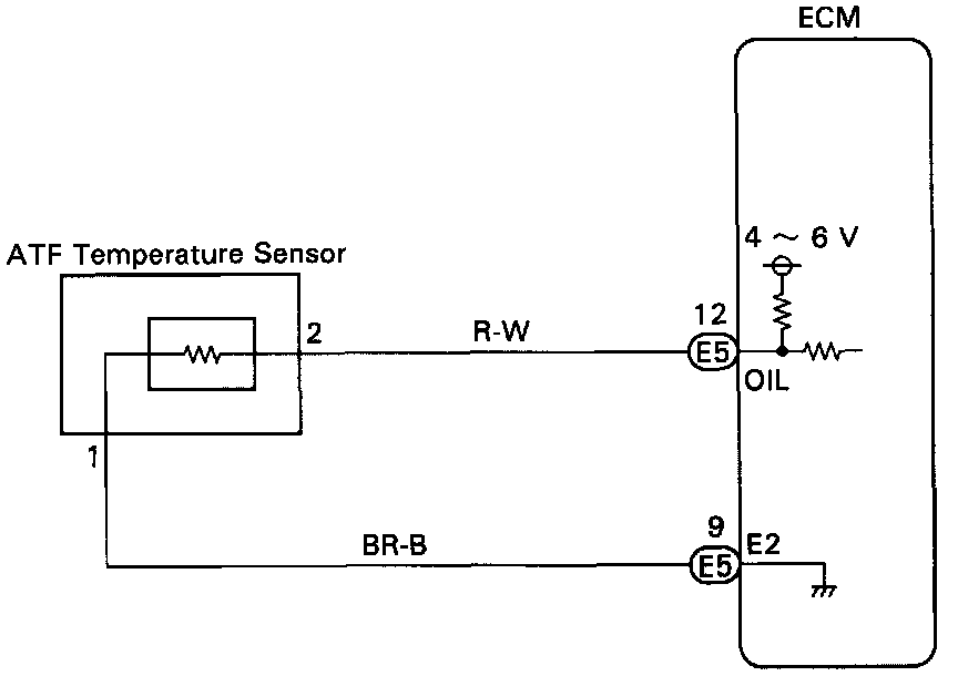The ATF temperature sensor converts fluid temperature into a resistance value which is input into the ECM.