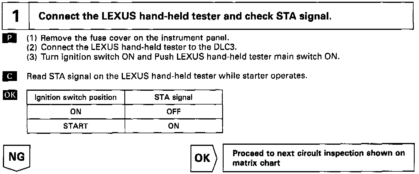 HINT: This diagnostic chart is based on the premise that the engine is cranked normally. If the engine is not cranked, proceed to the matrix chart of problem symptoms.