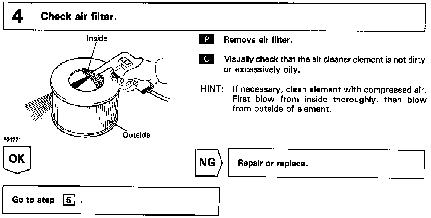 In many cases, by carrying out the basic engine check shown in the above flow charts, the location causing the problem can be found quickly and efficiently. Therefore, use of this check is essential in engine troubleshooting.