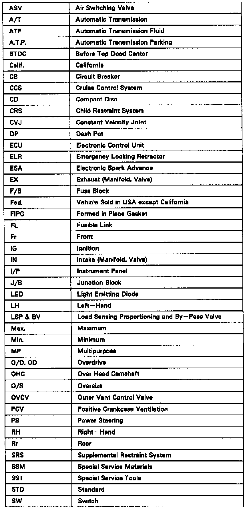 Abbreviations Used By LEXUS