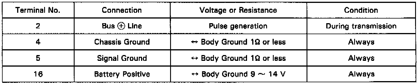 Data Link Connector Terminal Identification: