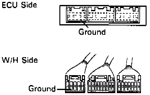 - Disconnect the ECU connector, check the ground terminals on the ECU side and the wire harness side for bend and check the contact pressure.