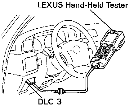 To check the DTC, connect the OBD II scan tool or LEXUS hand-held tester to Data Link Connector 3 (DCL 3) on the vehicle. The OBD II scan tool or LEXUS hand-held tester also enables you to erase the diagnostic trouble codes and check freeze frame data and various forms of engine data. (For operating instructions, see the OBD II scan tool's instruction book.)