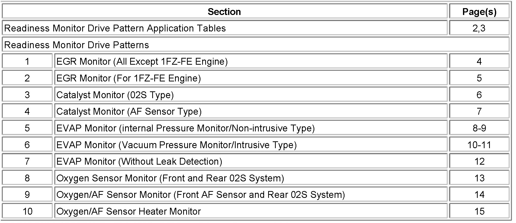 - These drive patterns represent the fastest method to satisfy all necessary conditions which allow the specific Readiness Monitor to complete.