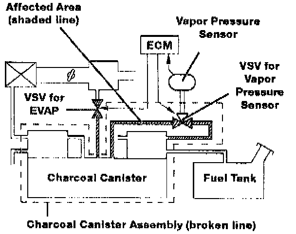 When performing diagnostics for an occurrence of a MIL "ON" condition, the Diagnostic Trouble Code (DTC) P0441 may be the result of debris in the Evaporative Emission Control System. This may cause blockage of a vapor line, or a stuck VSV, as described in the troubleshooting area of the Repair Manual.