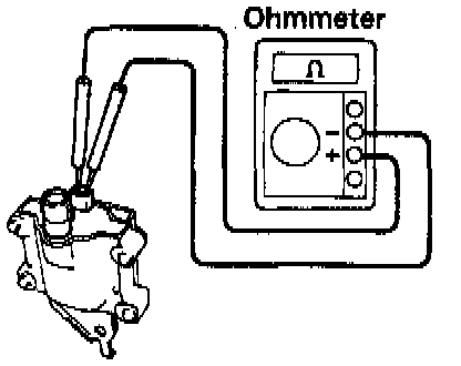 Using an ohmmeter, measure the resistance between the positive (+) and high-tension terminals.