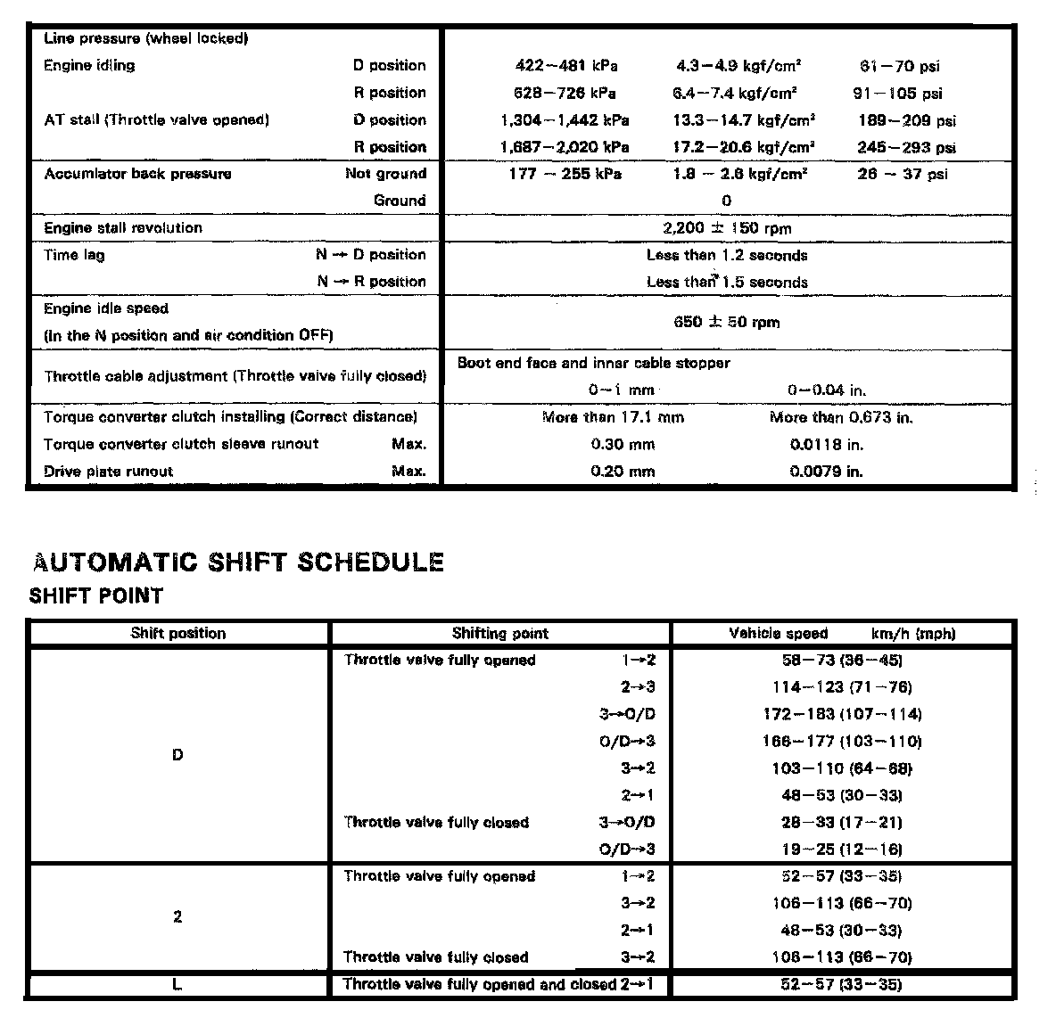 A343F 4-spd A/T, Line Pressure / Shift Schedule: