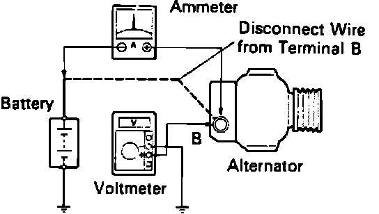 a. Disconnect wire from terminal B of alternator and connect it to (-) lead of ammeter.