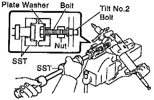 b. Remove the 2 tilt No. 2 bolts by using the sliding hammer on SST.