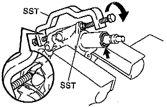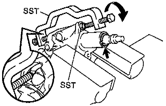 a. Set SST 0991-00015 (09911-00011, 09912-00010), the nut (10 mm nominal diameter, 1.25 mm pitch), plate washer (36 mm outer diameter) and bolt (10 mm nominal diameter, 1.25 mm pitch, 50 mm length).