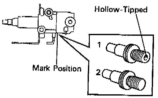 4. Select tilt No. 2 bolts. Select the bolt with plain thread end when the column upper tube mark is 2, and the bolt with the hollow-tipped thread end when the mark is 1.
