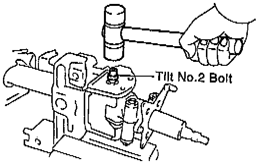 d. Using a plastic hammer, drive in the 2 tilt No. 2 bolts.