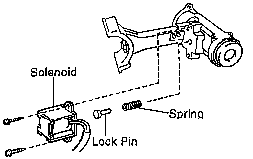 b. Remove the solenoid, spring and lock pin.