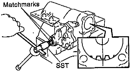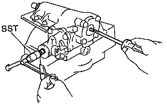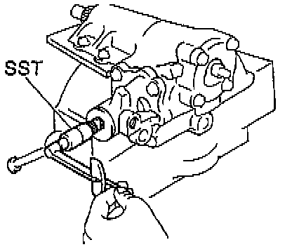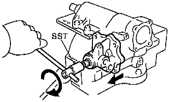b. Using SST 09616-00010, turn the valve body shaft clockwise with holding the worm gear by your finger so it cannot move.