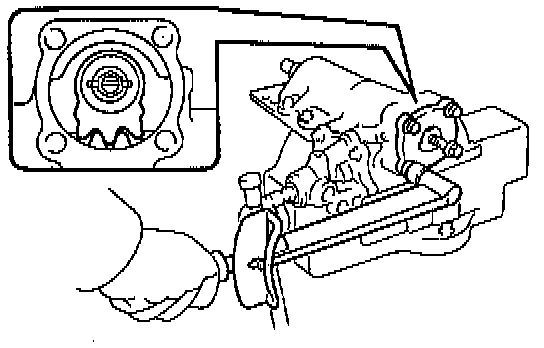c. Install and push the cross shaft into the gear housing so that the center teeth mesh together.