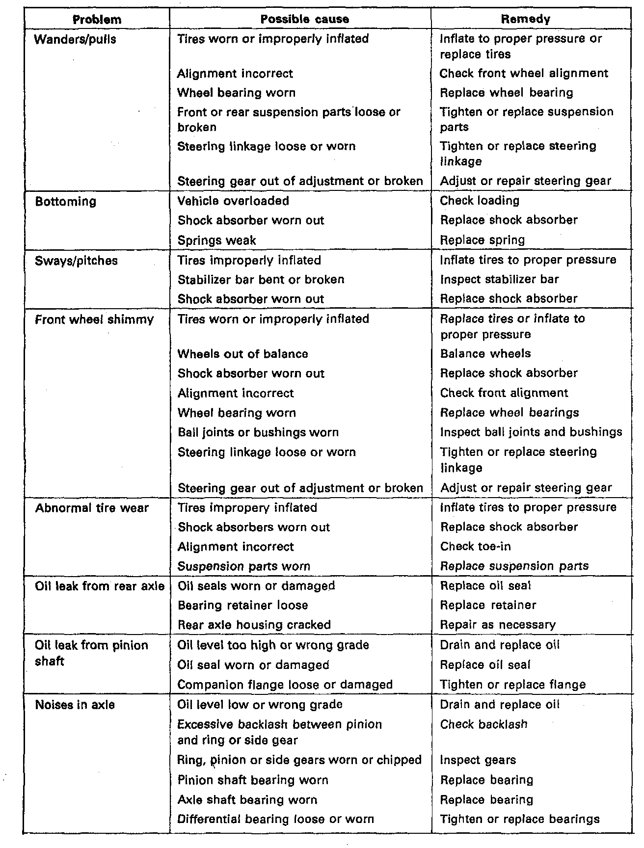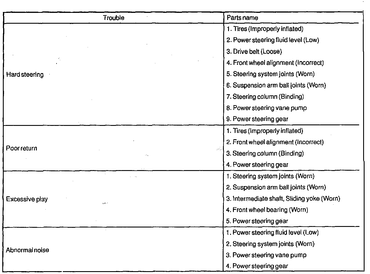 Use the table to help you find the cause of the problem. The numbers indicate the priority of the likely cause of the problem. Check each part in the order shown. If necessary, repair or replace these parts.