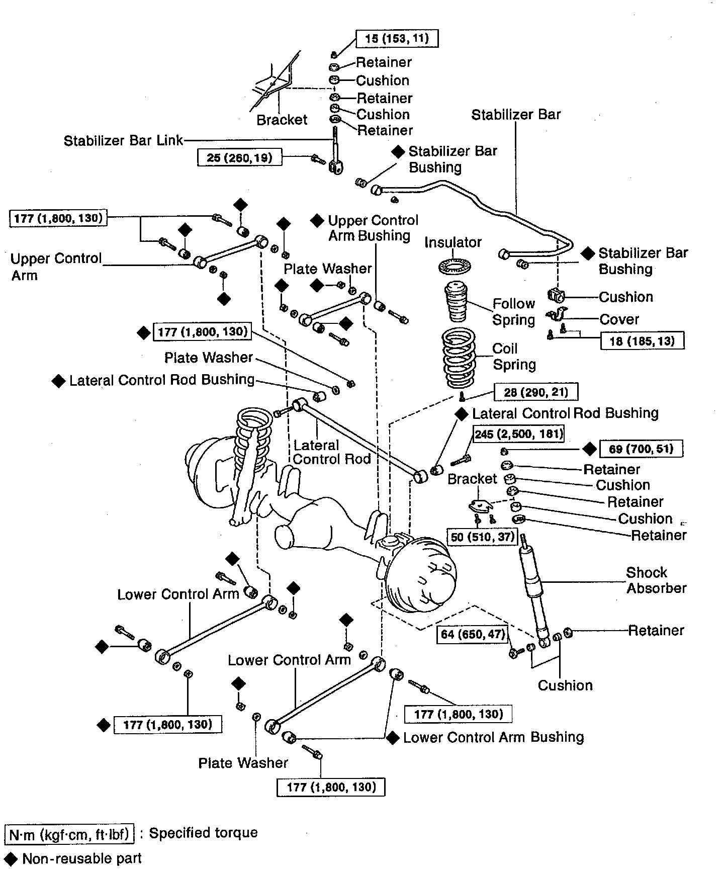 Rear Suspension / Coil Spring, Shock Absorber, Control Rods, Stabilizer Bar: